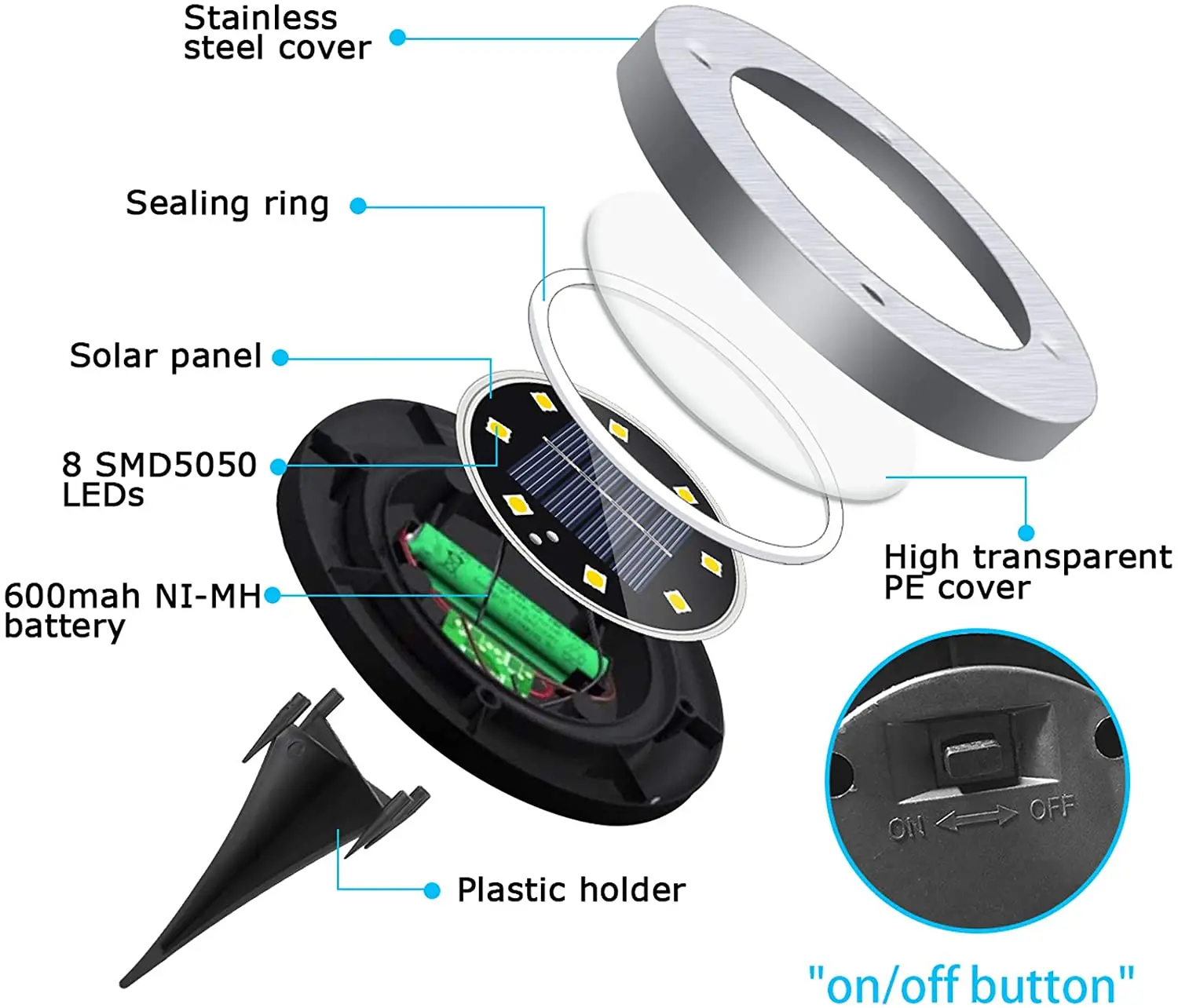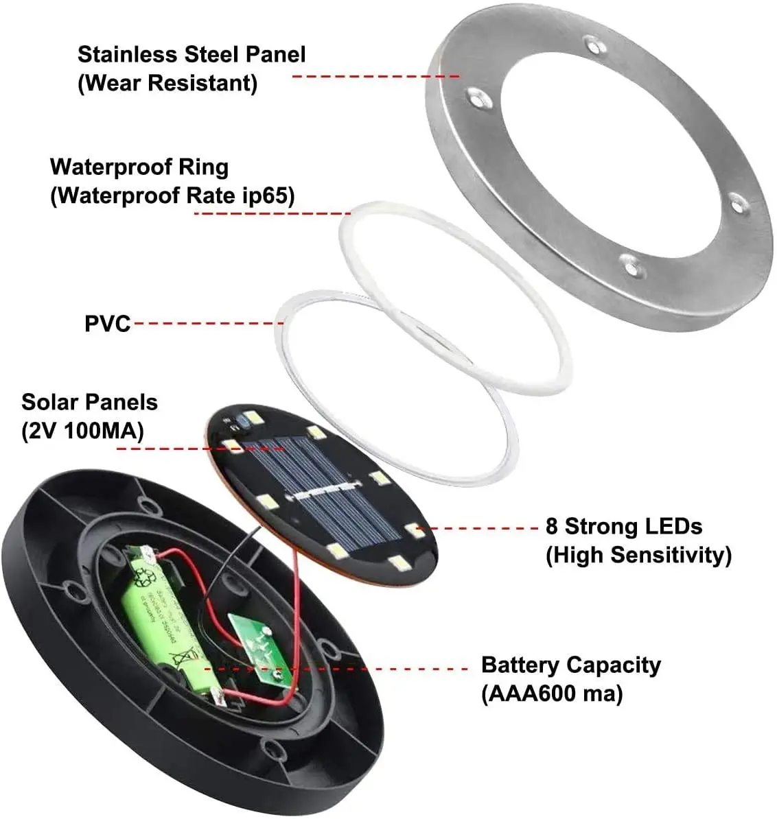 Характеристики8 LED Solar Powered Disk Lights Waterproof