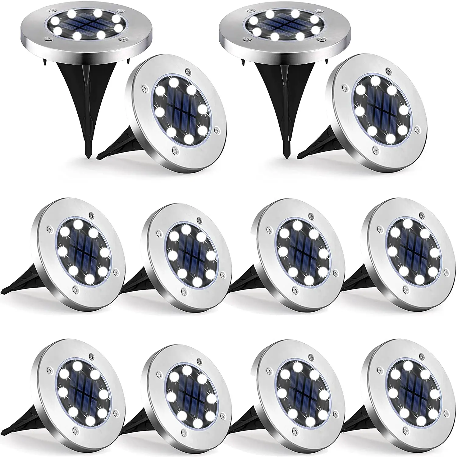 Уличные садовые фонари на солнечной батарее, 8 светодисветодиодный, водонепроницаемые подземные светильники с датчиком освещения ландшафта для газона, двора, террасы