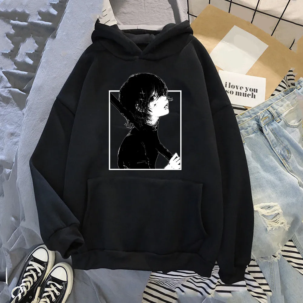 Новинка 2022, Аниме толстовки, Женский свитшот, черно-белый Принт д...