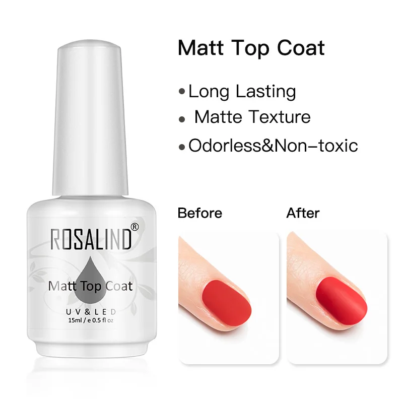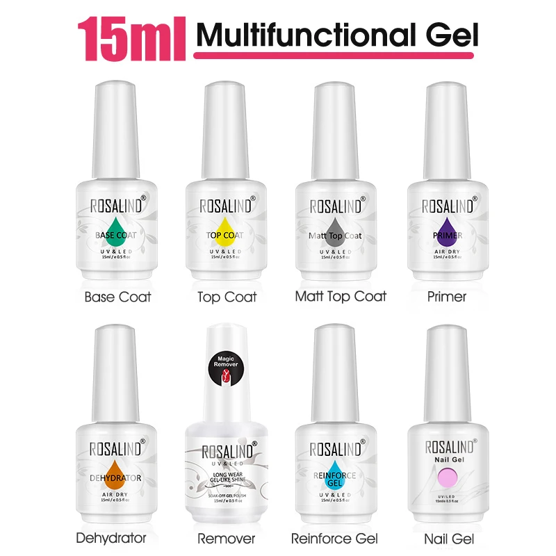 Базовое и топовое покрытие ROSALIND, 15 мл, матовое резиновое покрытие, Гель-лак для ногтей, отмачиваемый Праймер, волшебное средство для снятия лака, Гель-лак для ногтевого дизайна, салонный маникюр