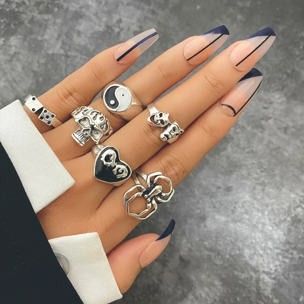 IFMIA трендовые серебряные кости Череп Паук Кольца для женщин винтажные женские модные кольца Инь Янг 2022 ювелирные изделия для свадьбы