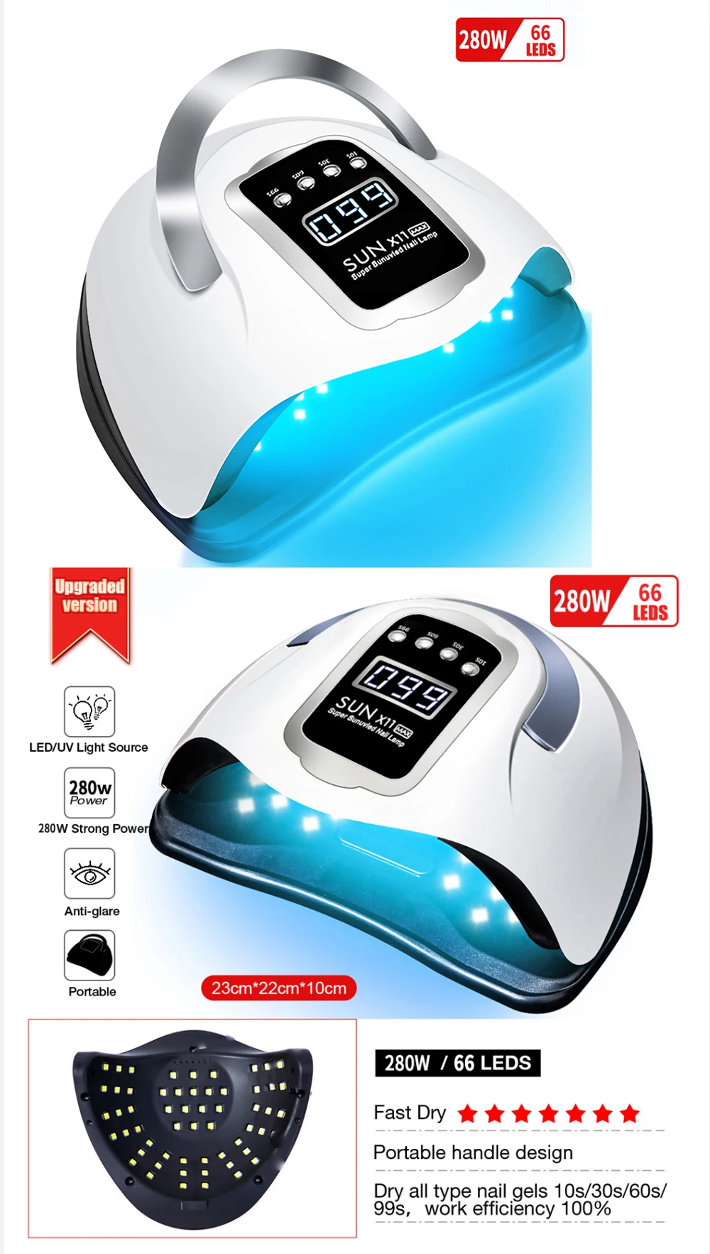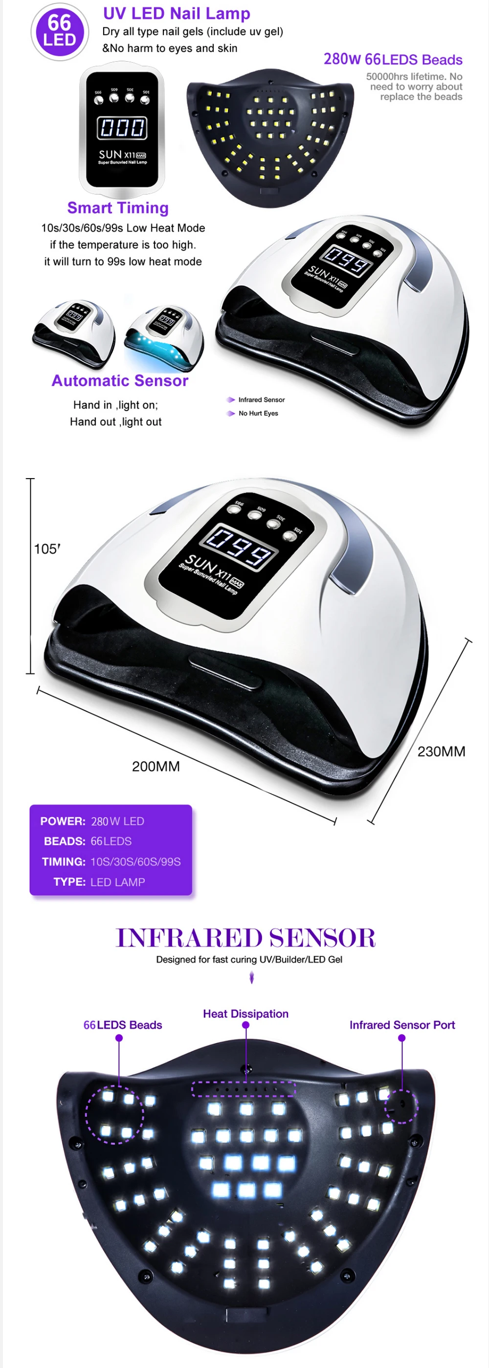 280W SUN X10 Max светодиодная УФ-лампа для ногтей для сушки с 66 св...