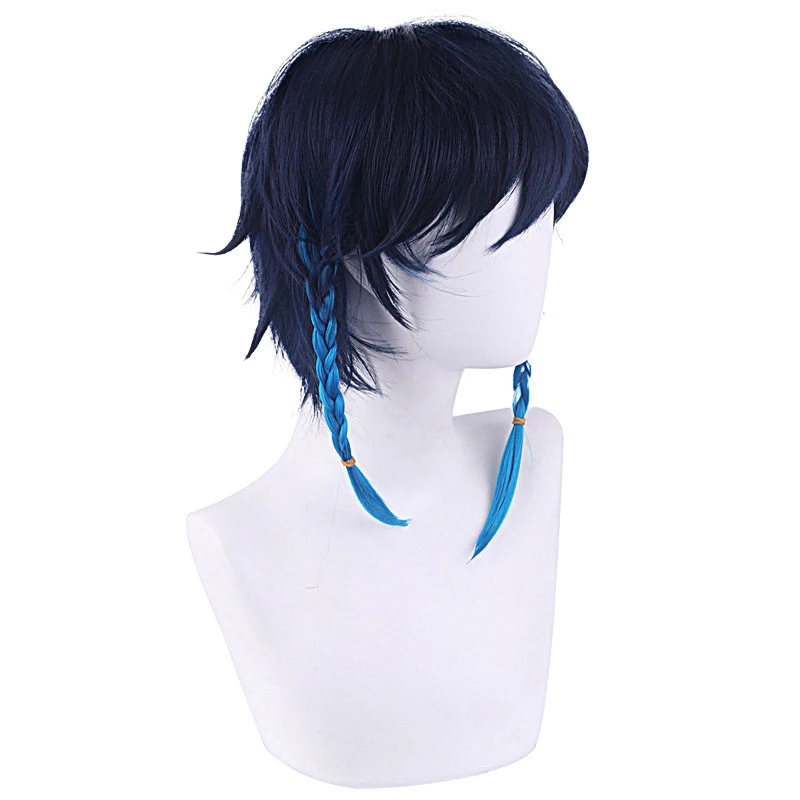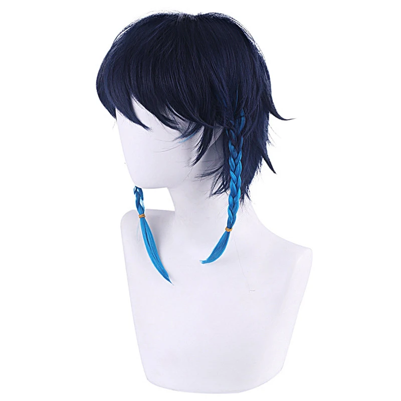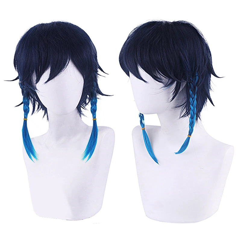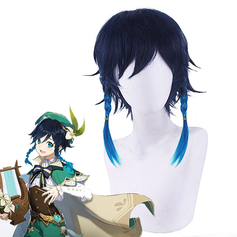 Genshin Impact Venti Косплей Аниме игра синий градиент короткие твист плетеные волосы искусственные волосы фото + парик шапочка