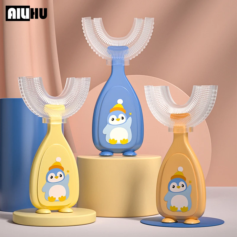 Детская зубная щетка U-образной формы, 360 градусов, Детская Мягкая Силиконовая зубная щетка, детский инструмент для ухода за зубами и ротовой полостью, детская зубная щетка