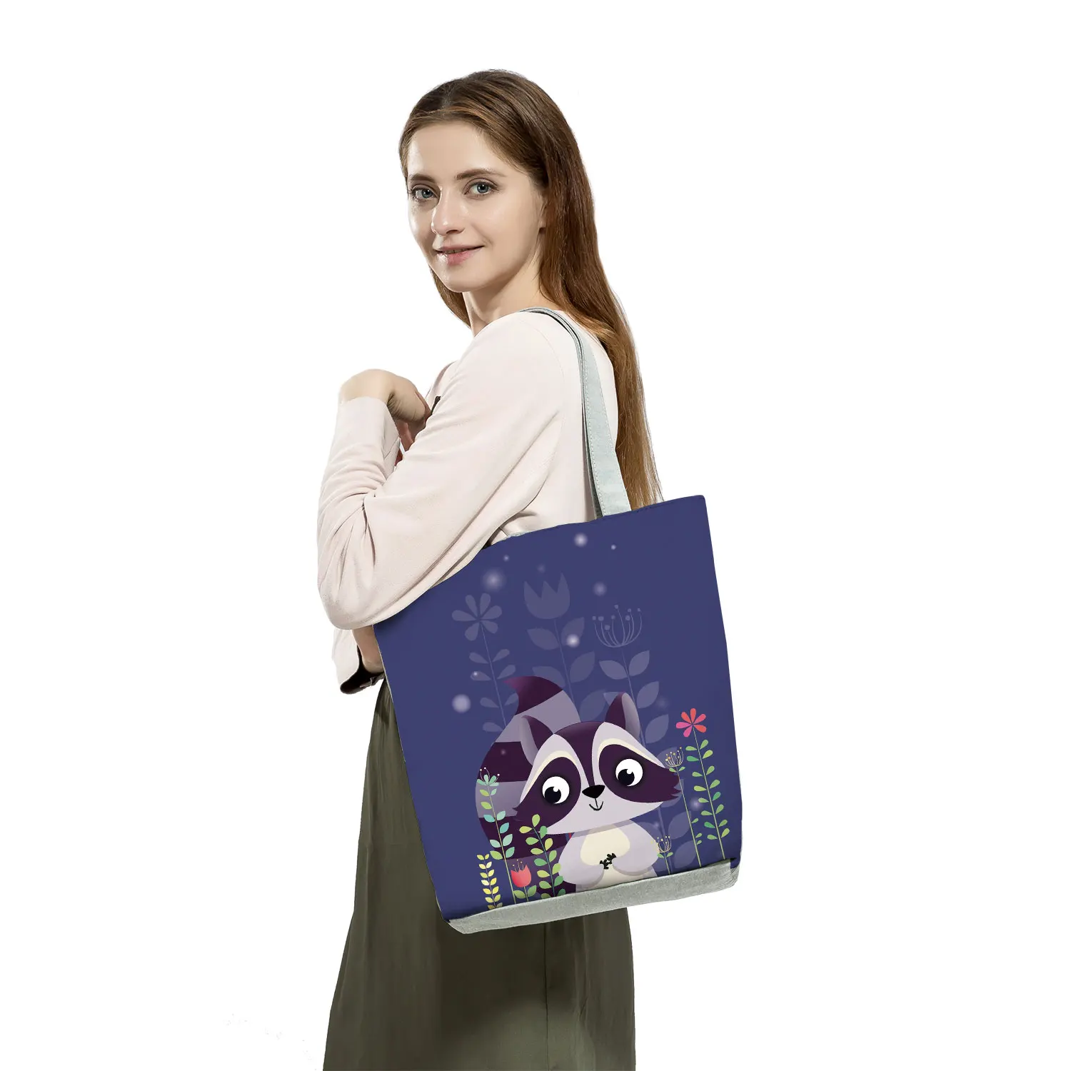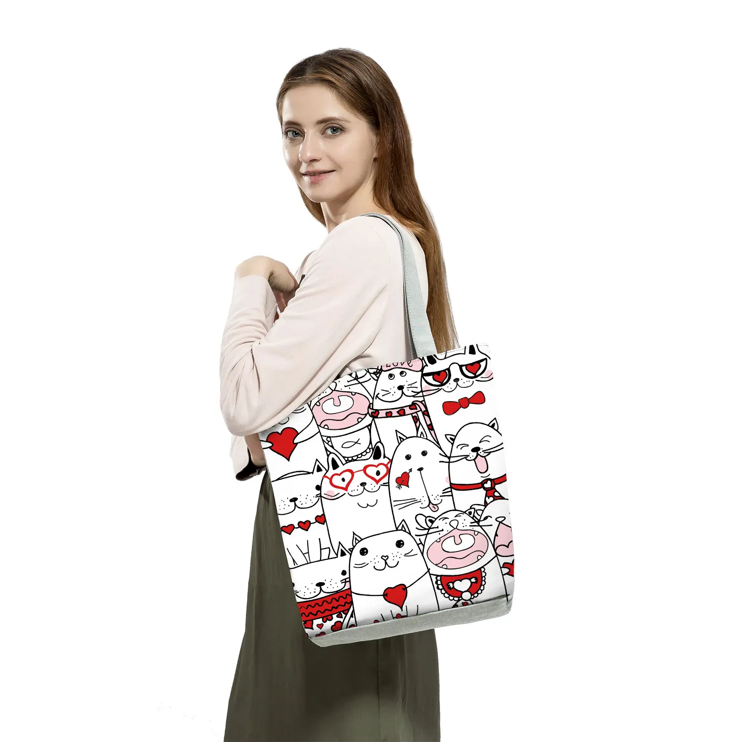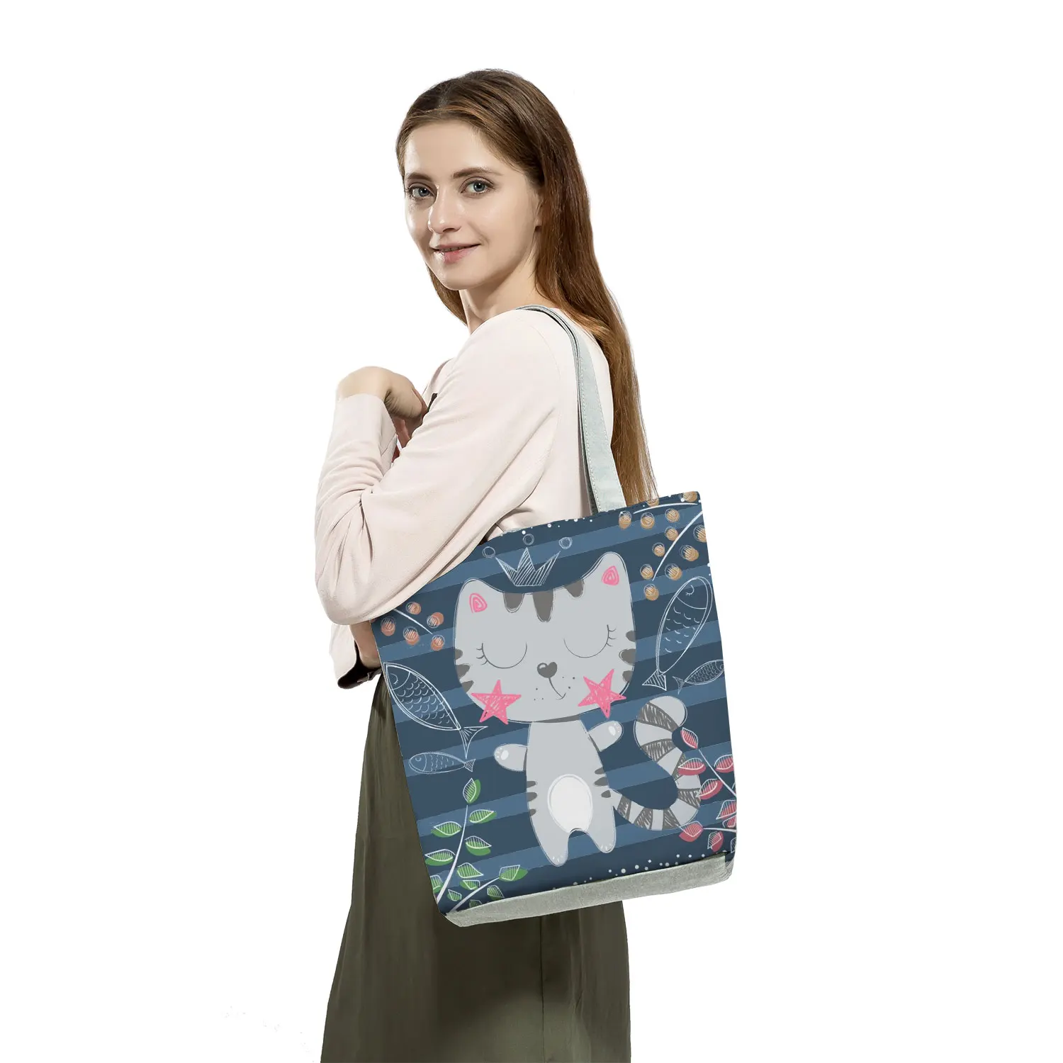 Женская сумка через плечо с объемным принтом кота из мультфильма, Повседневная Складная многоразовая сумка для покупок