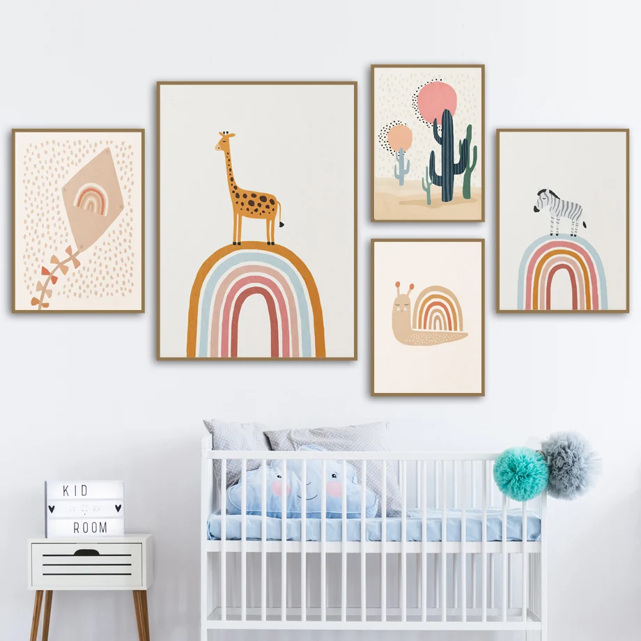 Жираф Зебра Леопард кактус кайт Бохо детская Настенная картина на холсте картина в скандинавском стиле настенные картины декор для детской спальни