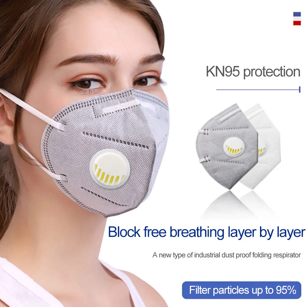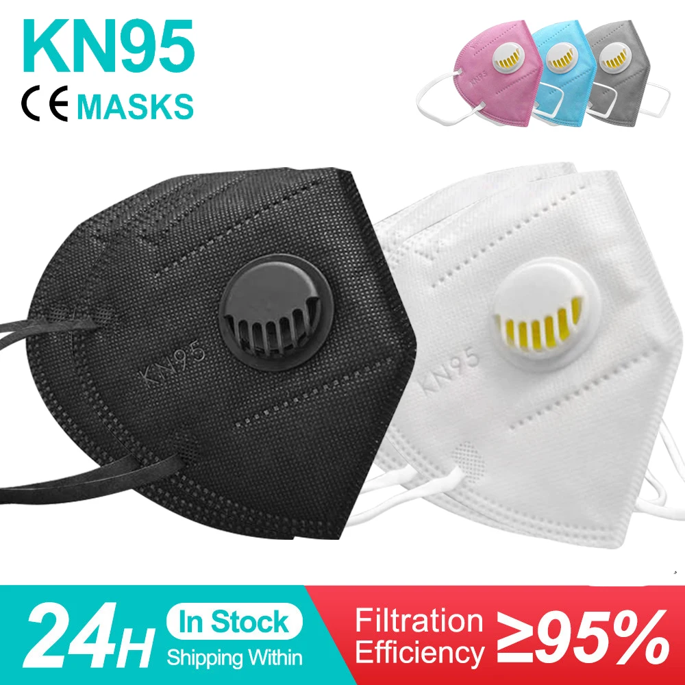 Респиратор для лица KN95 FFP2 FPP2, 5-слойная черная дышащая защитная маска с клапаном, CE