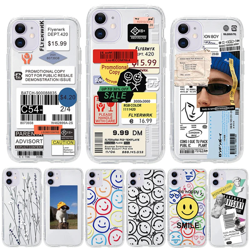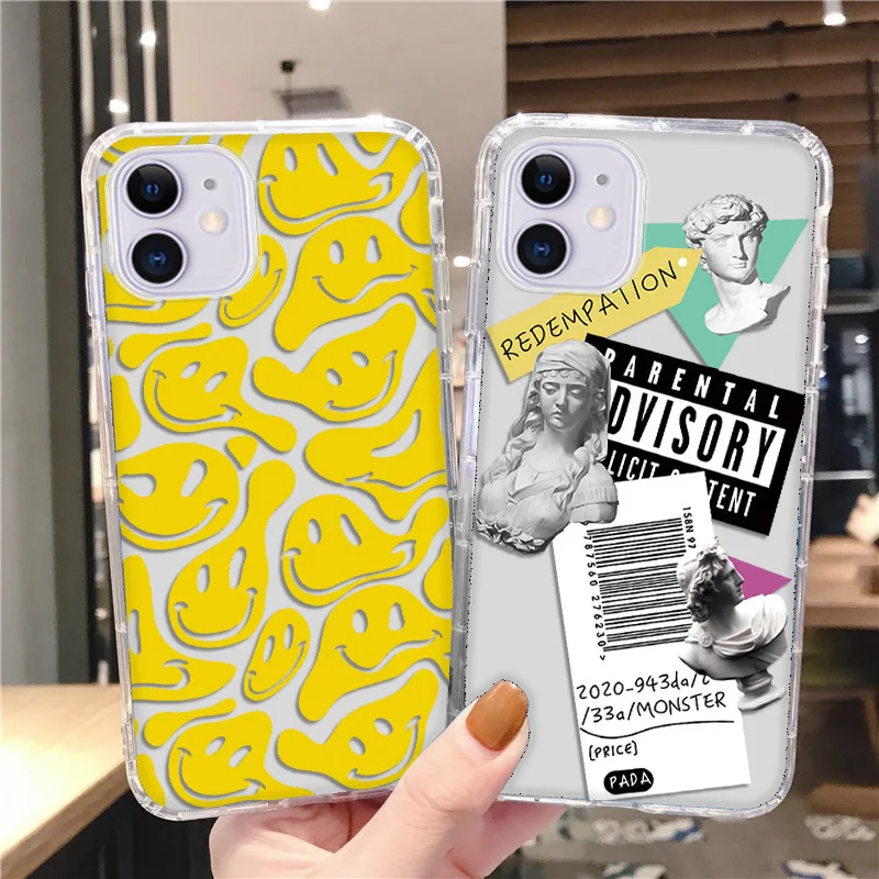 Прозрачный чехол для iPhone 13 Pro Max, Роскошный чехол для iPhone11 11 12 Mini XR X XS SE 2020 7 8 Plus 6 6S, мягкий чехол с улыбающимся лицом