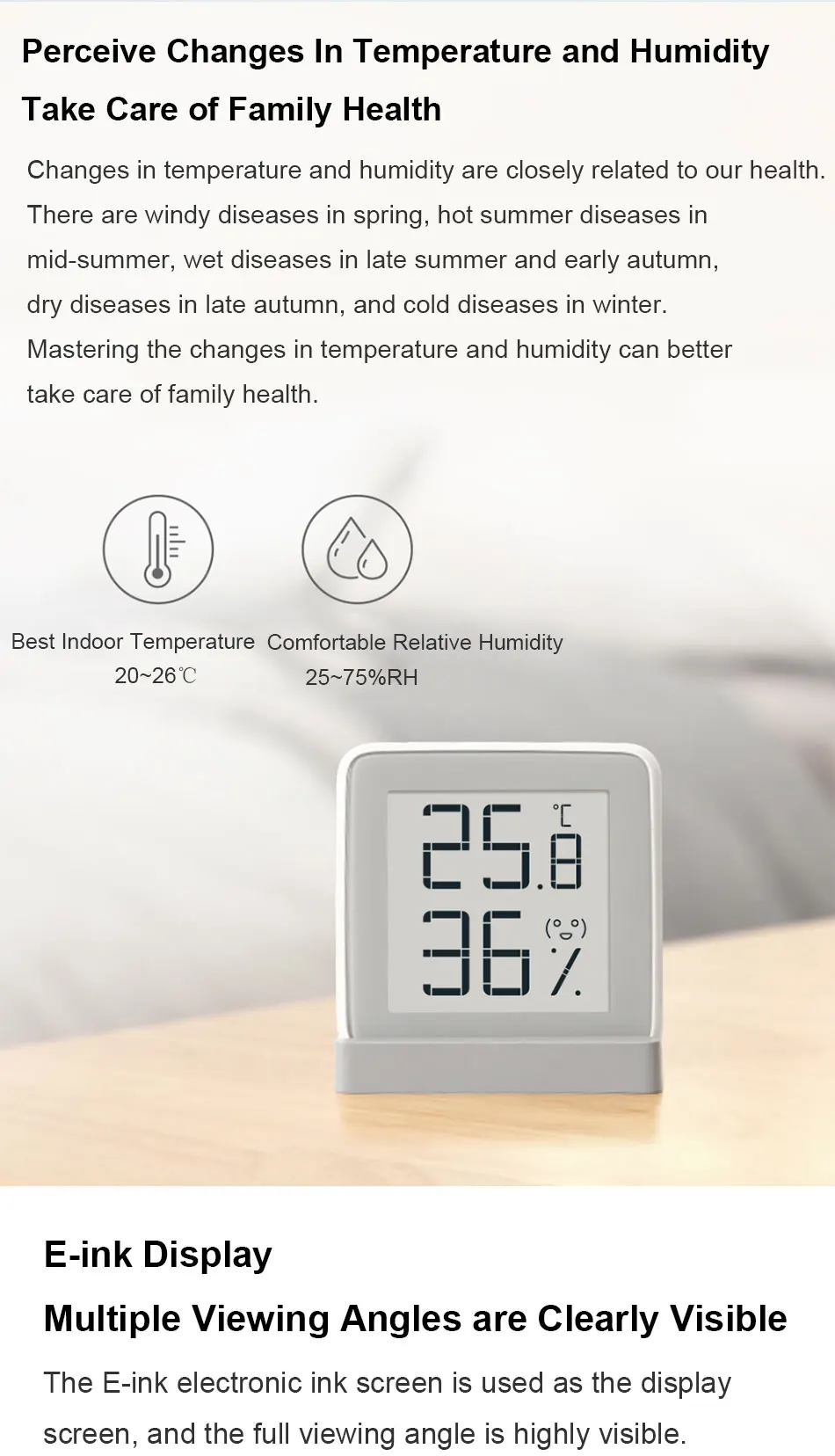 Цифровой измеритель влажности Youpin MiaoMiaoCe E-Link INK, высокот...