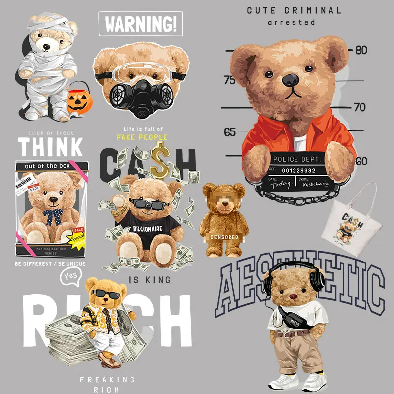 Индивидуальное художественное слово, плюшевая кукла, медведь, животный узор, термоклейкая Виниловая наклейка для одежды, наклейки, печатные украшения