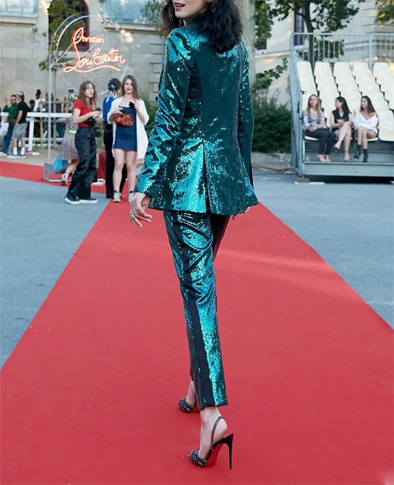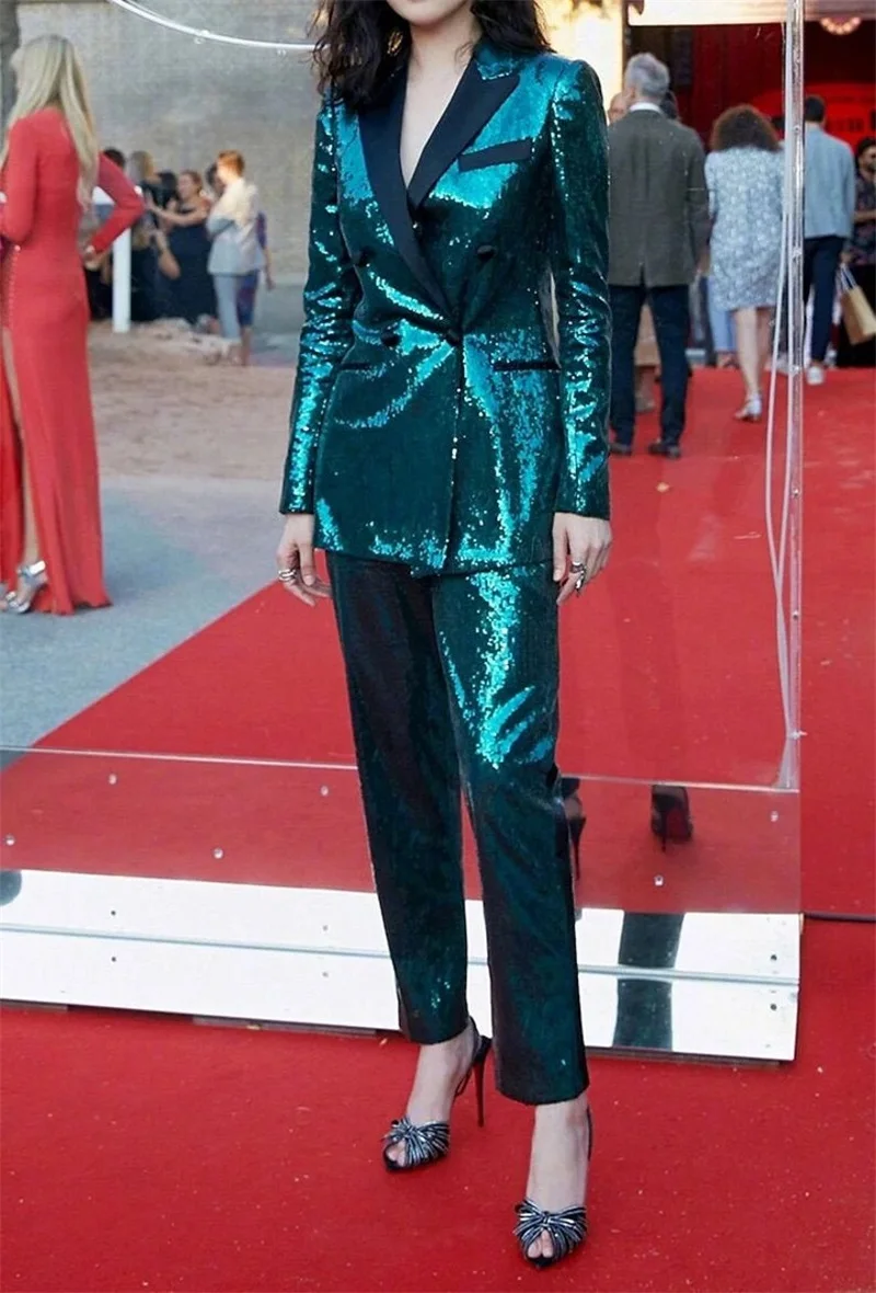 Женские Блестящие Зеленые костюмы костюм женский блейзер + брюки вечерние официальные смокинги для свадьбы 2 шт. на заказ