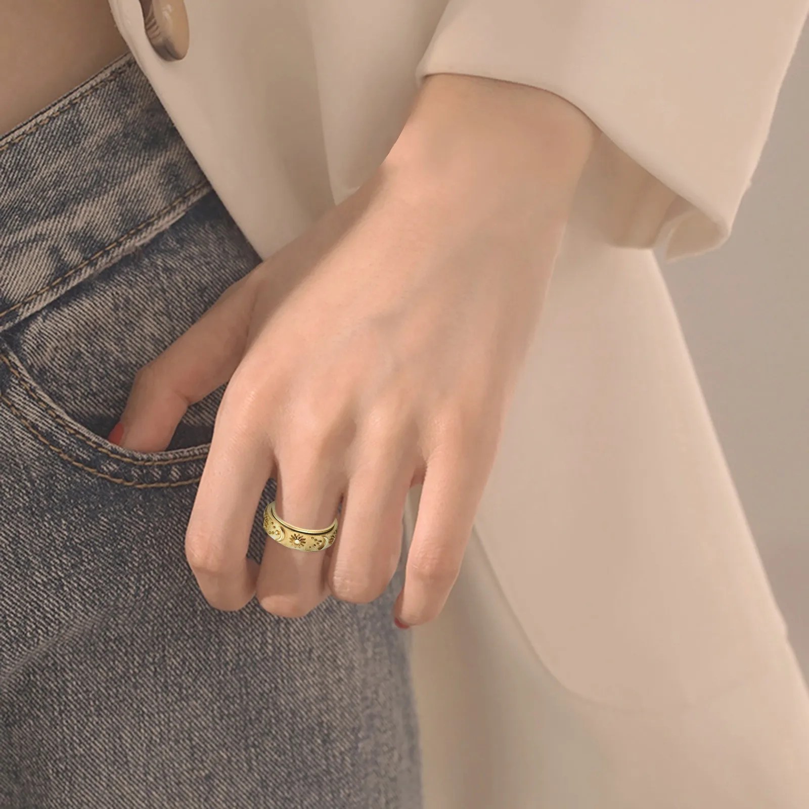 Спиннер из нержавеющей стали кольцо для беспокойства Непоседа кольца для снятия стресса Тревожное кольцо Солнце Луна звезды обещают обручальное кольцо