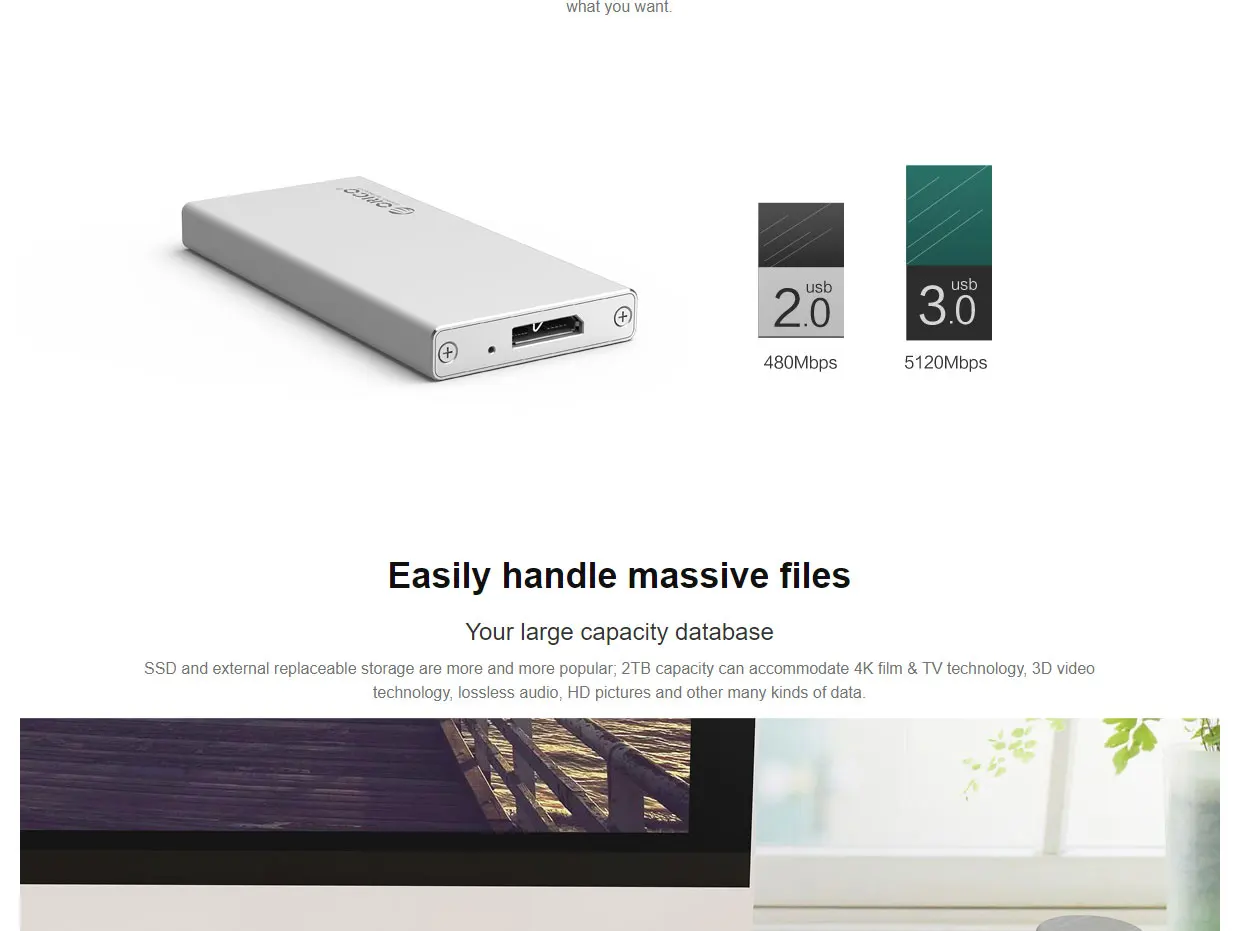 2. Интерфейс продукта: USB3.0 A к порту типа + mSATA