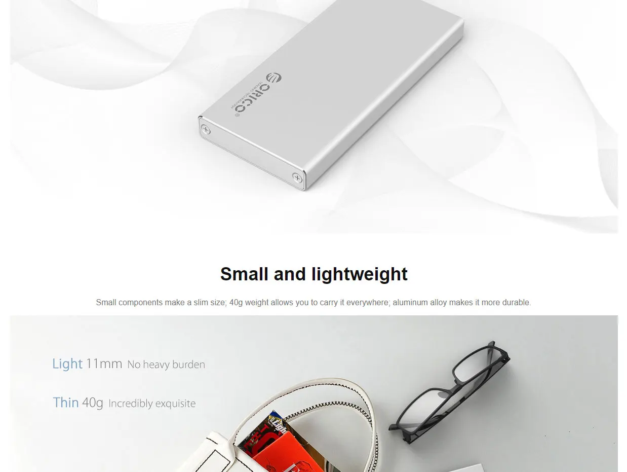 Корпус ORICO для жесткого диска, портативный алюминиевый твердотельный жесткий диск с интерфейсом USB 3,0 Micro B