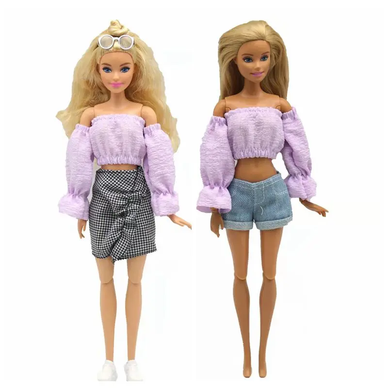 11,5 "светильник фиолетового цвета с буффами на рукавах, рубашка кукла длиной 30 см наряды для Барби кукольная одежда топ и юбка шорты 1/6 BJD аксессуары Игрушка 1:6