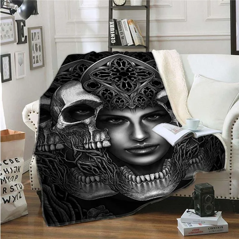 Одеяло для взрослых и детей, Фланелевое покрывало с рисунком черного черепа сатаны для женщин и женщин, подходит для кровати, дивана, кресла
