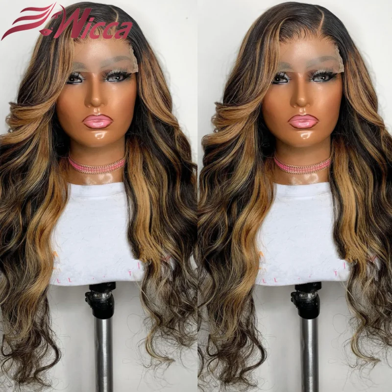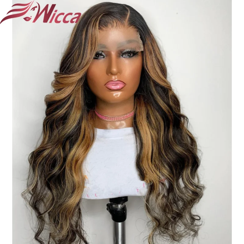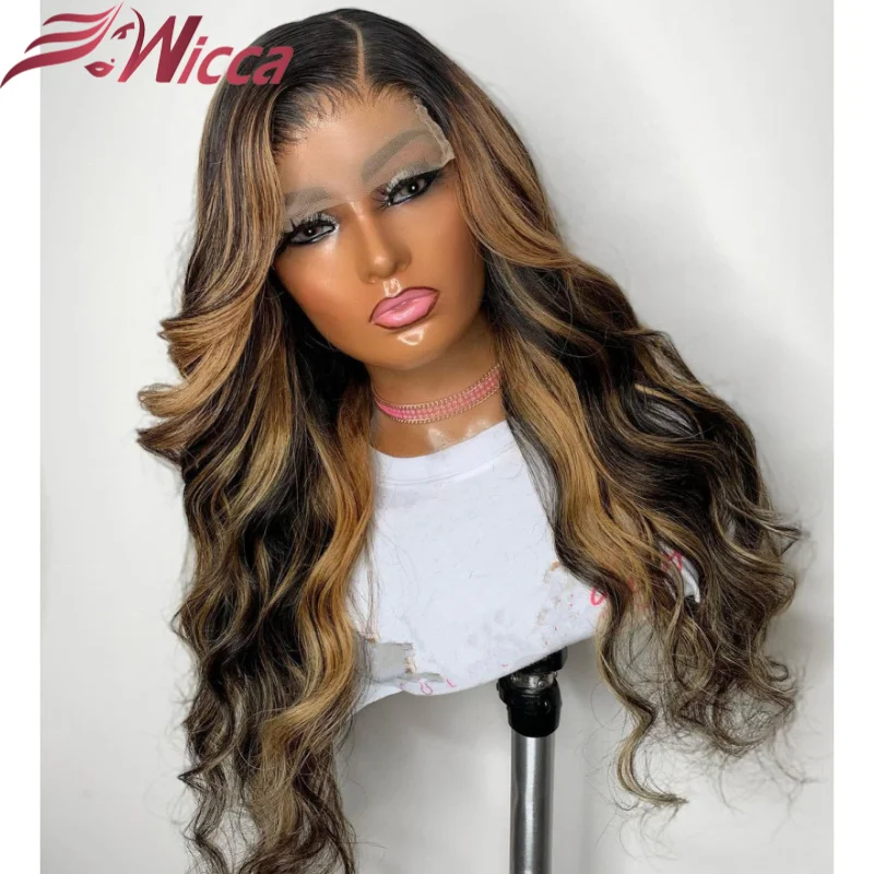 Хайлайтер медового цвета 13x 4 кружевные передние человеческие волосы парики для женщин 180 плотность предварительно выщипанные бразильские Remy волнистые с детскими волосами