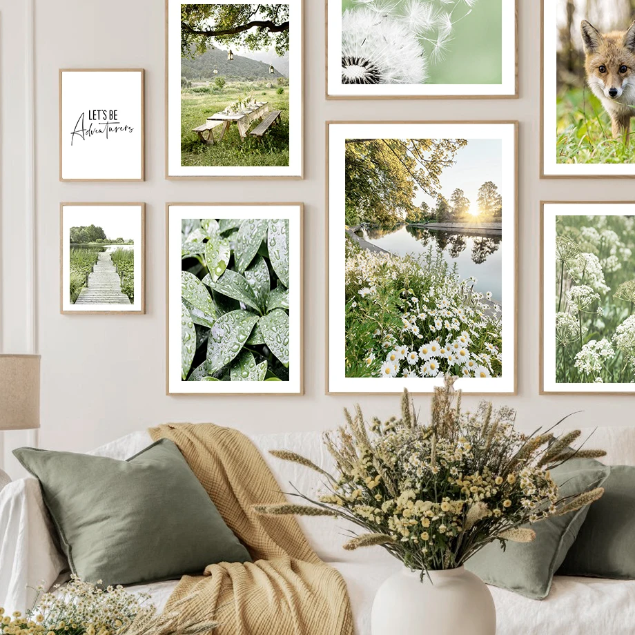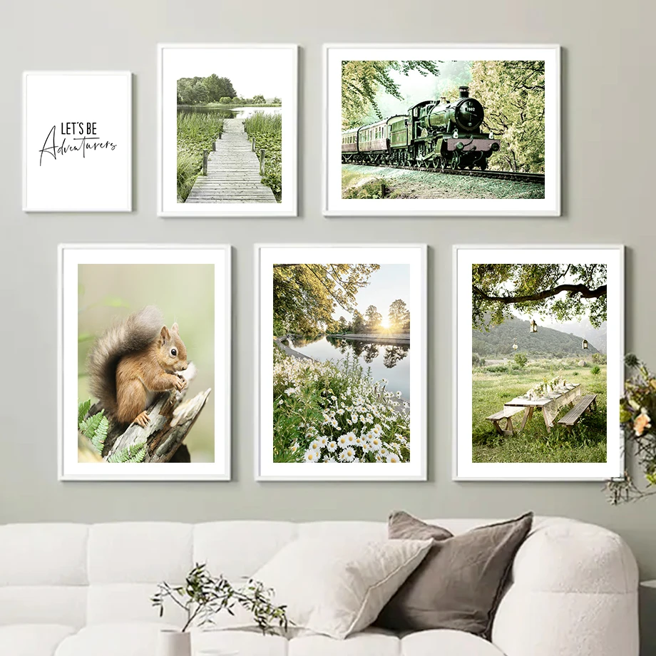 Озеро солнце Одуванчик поезд лиса цветок листья природа плакаты и принты Настенная картина на холсте настенные картины для декора гостиной
