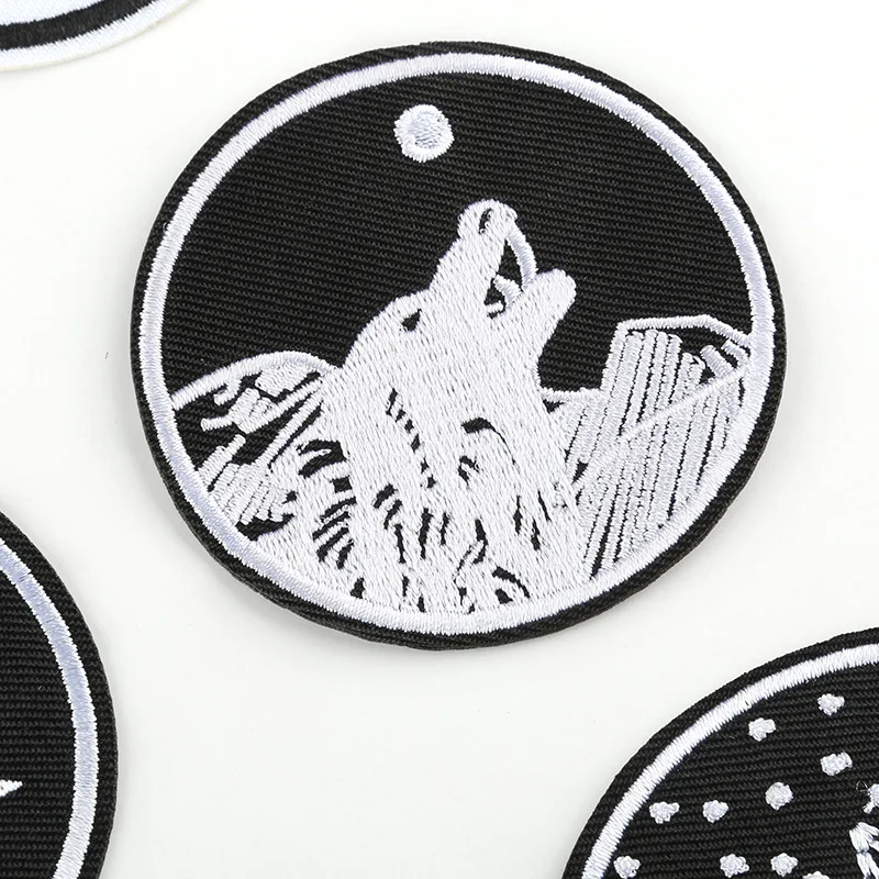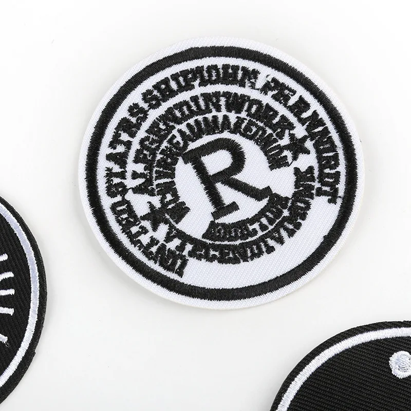 Набор черных и белых круглых вышивных значков, Простые художественные термоклейкие нашивки для футболок, кепок, сумок, обуви, товары для шитья, аппликации