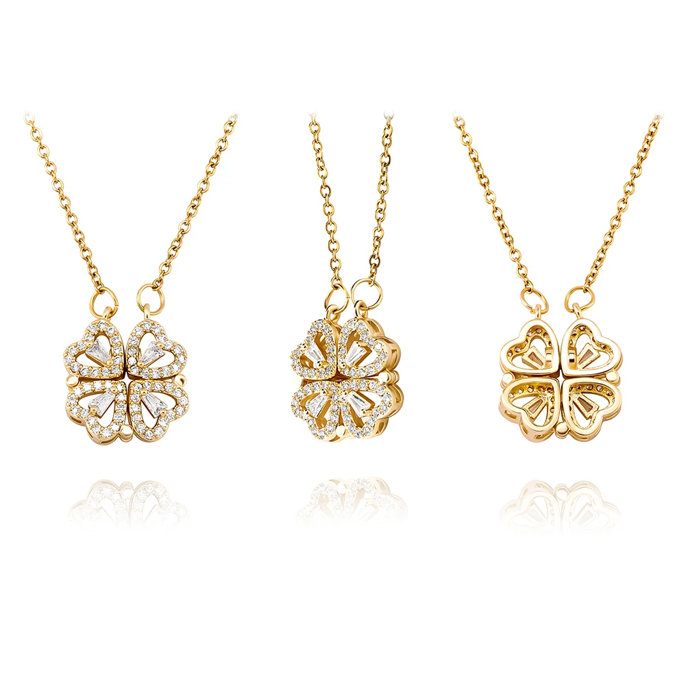 Креативное магнитное складное ожерелье в форме сердца с четырехлист...