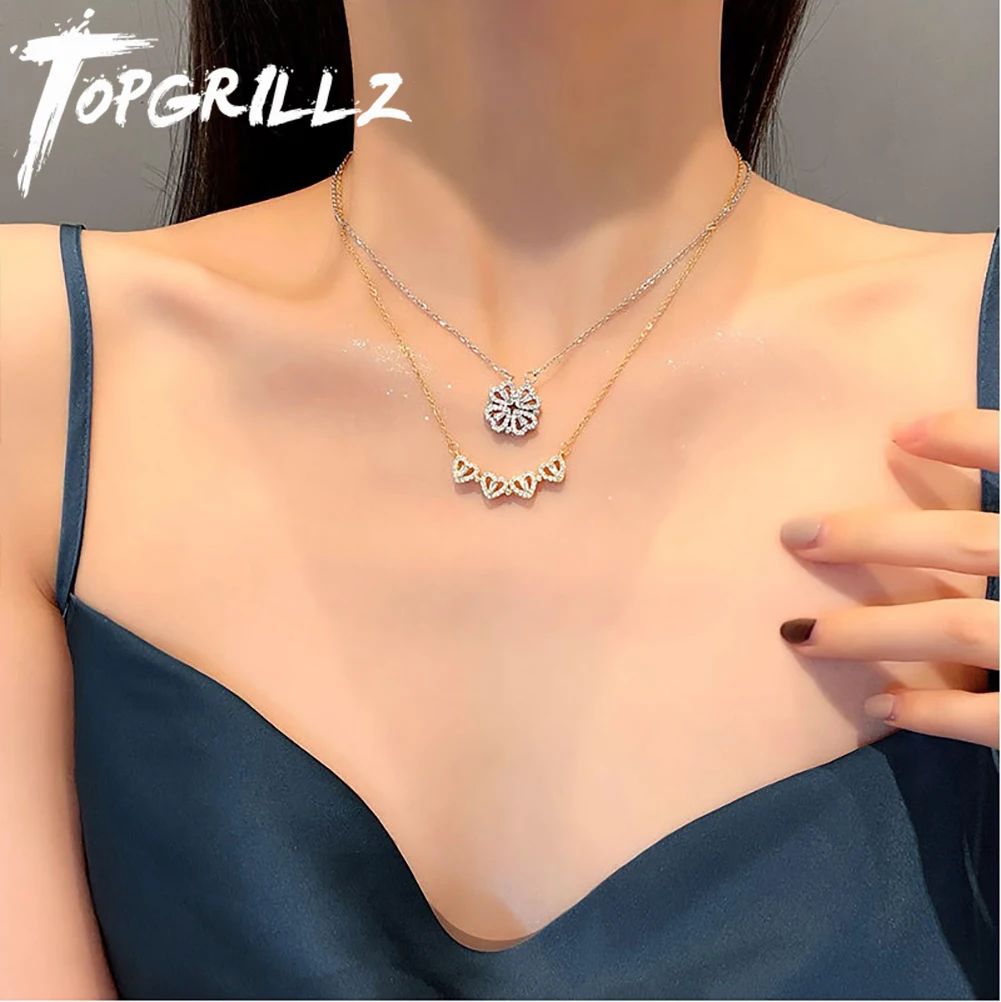 TOPGRILLZ новый дизайн сердце четырехлистный клевер Магнитная подвеска ожерельеРегулируемое вращающееся кольцосерьги женские ювелирные наборы