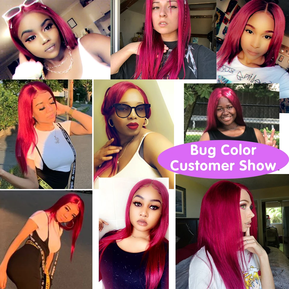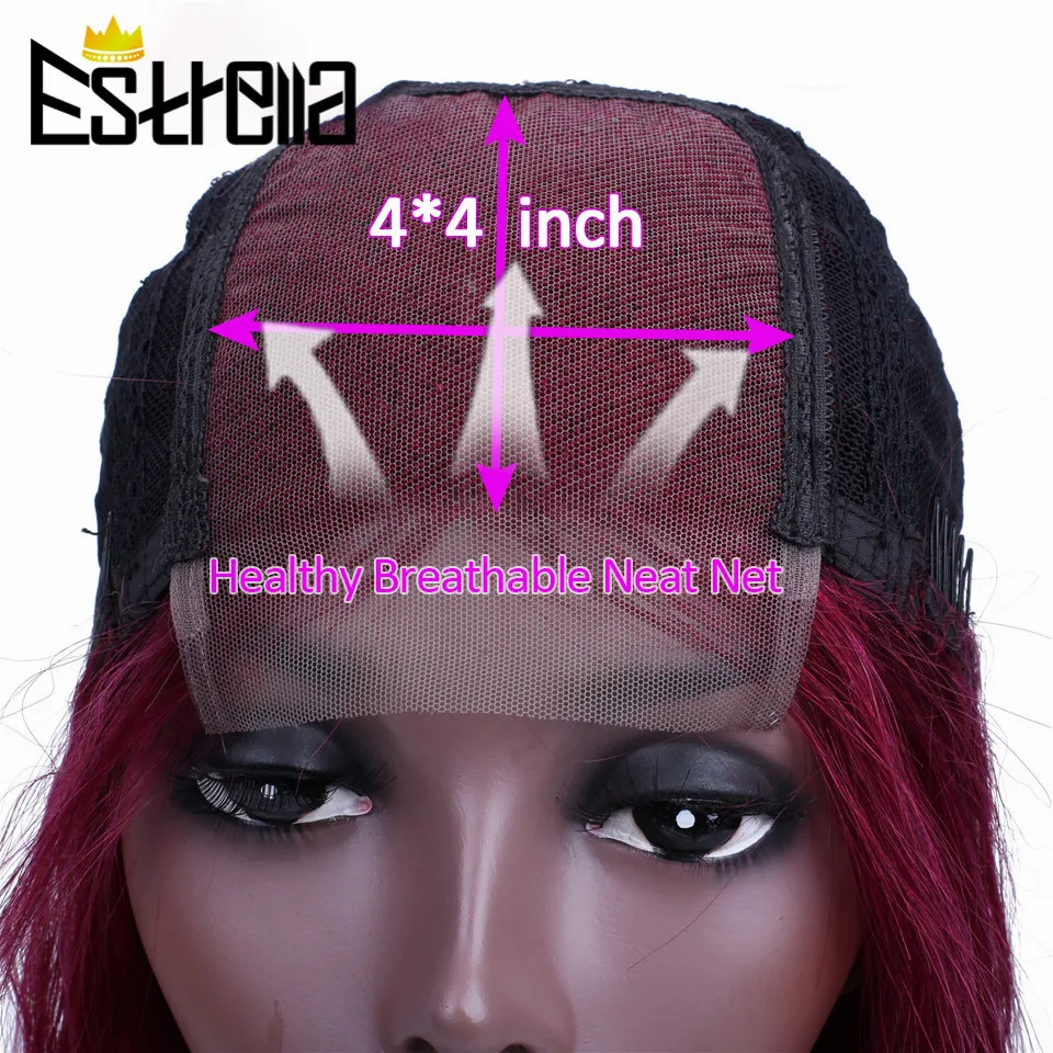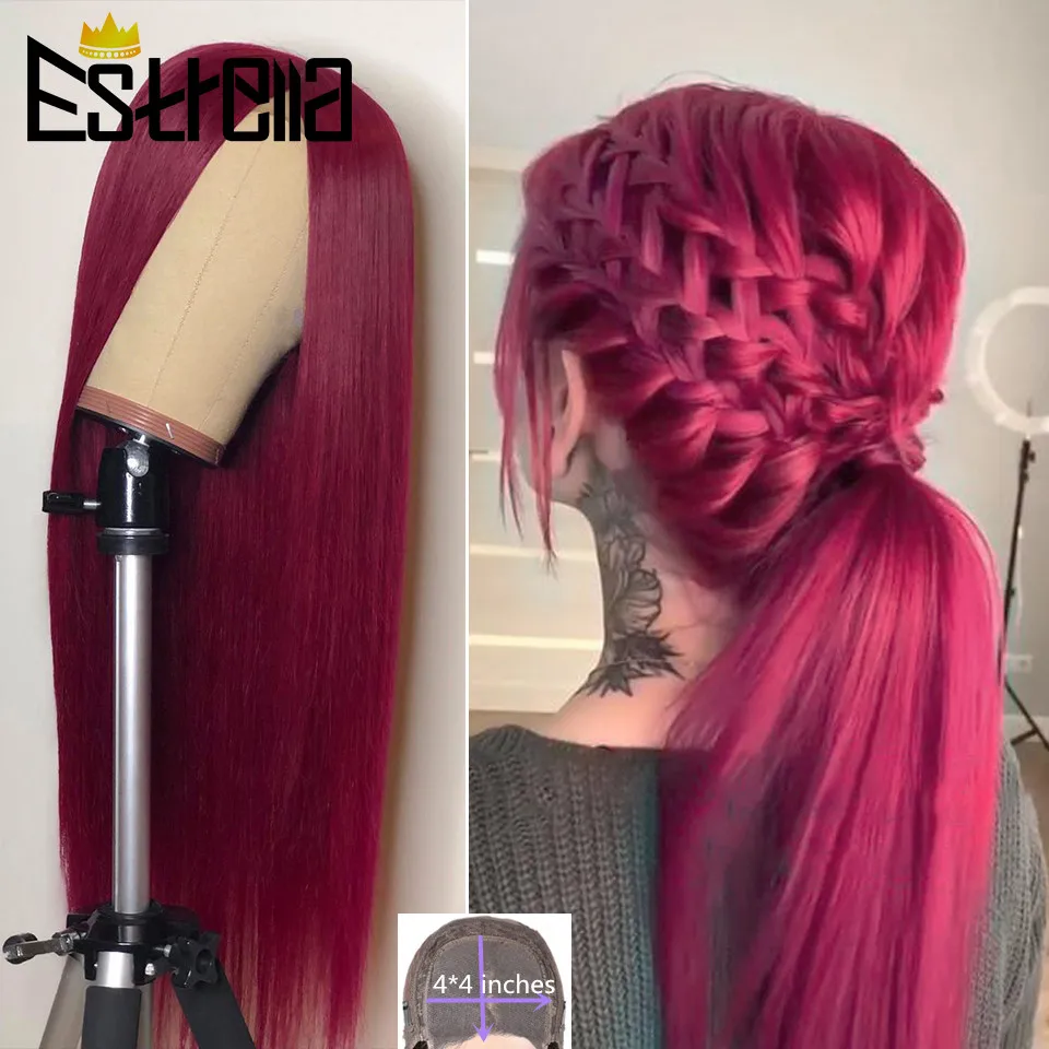 Парики из красных человеческих волос, бразильские прямые волосы бордового цвета, парики из человеческих волос с предварительно выщипанными длинными прямыми волосами Remy, парик с застежкой 4x4, 150%