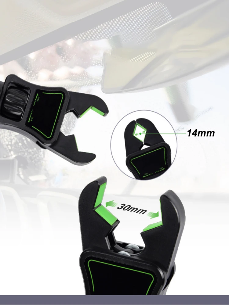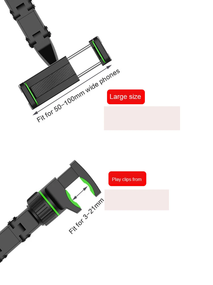 [Регулируемый автомобильный держатель для телефона]: свободное вращение, регулируемая ширина 50-100 мм, подходит для большинства мобильных телефонов на рынке, ширина зажима 3-21 мм, закрепите его там, где вы хотите. Шарнирное соединение позволяет просматривать телефон в ландшафтном и портретном режиме. Используется для фиксации смартфонов и мобильный телефон различных размеров.