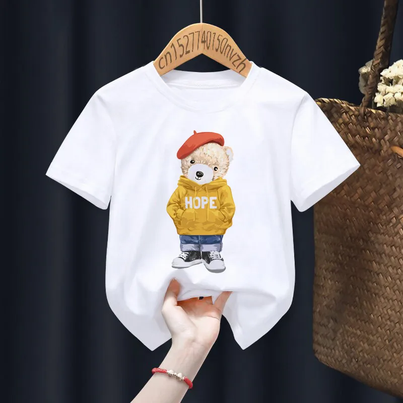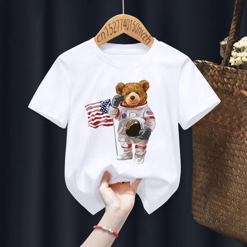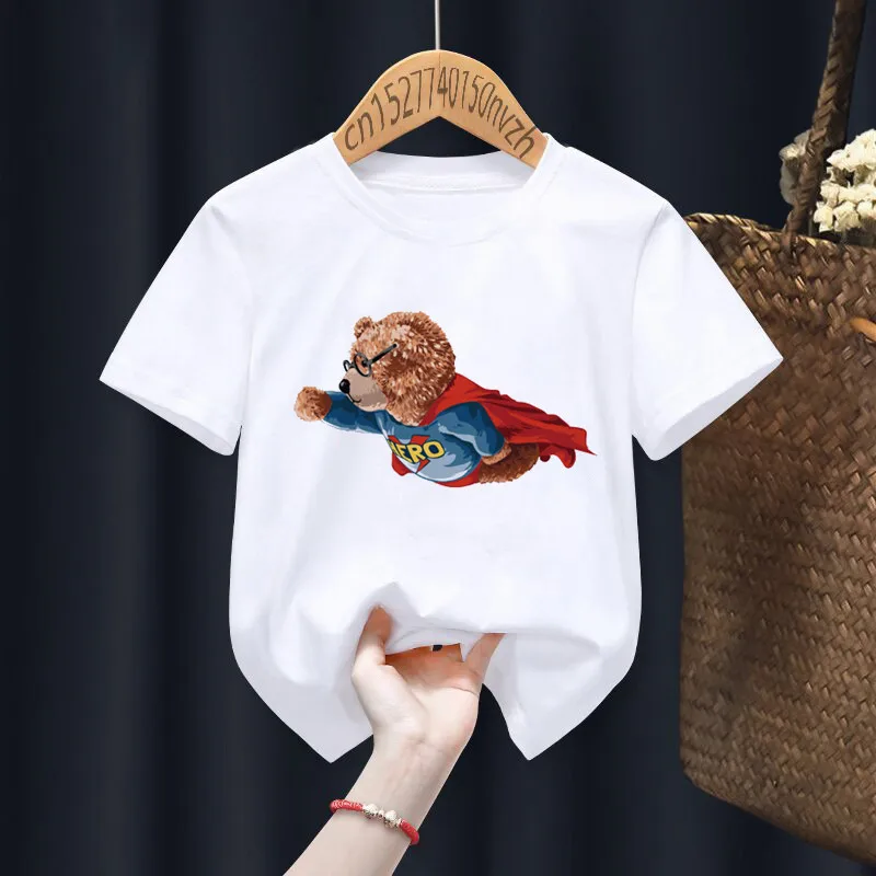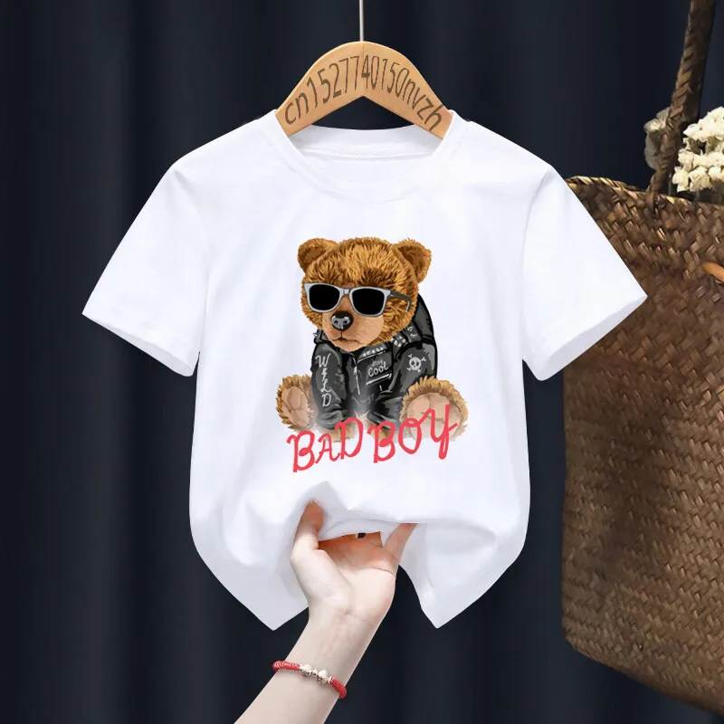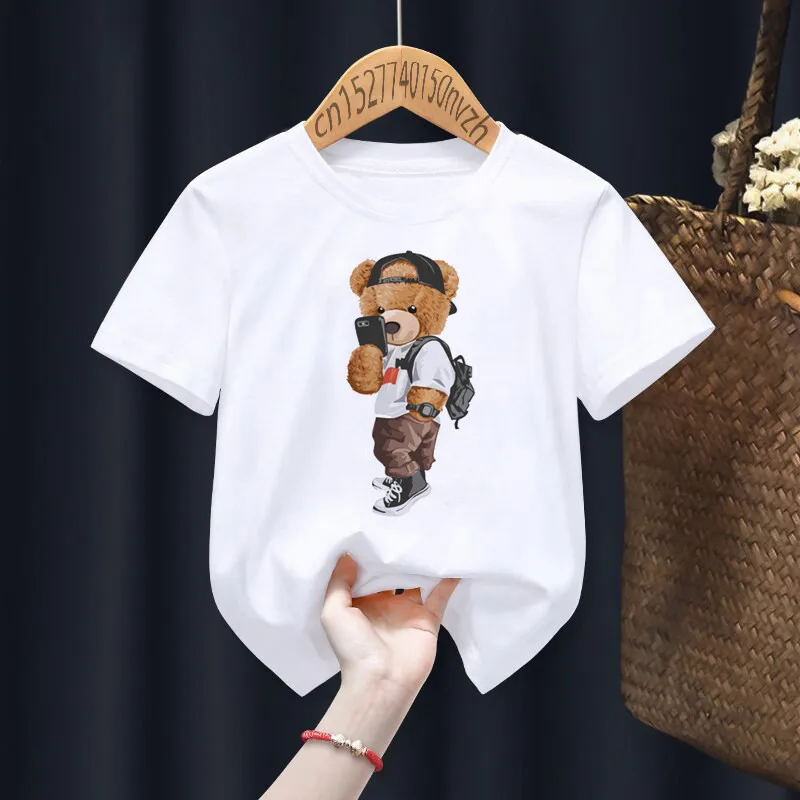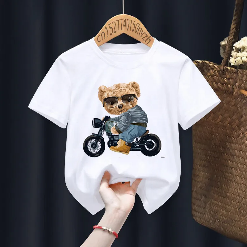 Забавный медведь для езды на велосипеде, белая футболка для мальчиков и девочек, милый забавный маленький ребенок в стиле Харадзюку, одежда Y2K, Прямая поставка