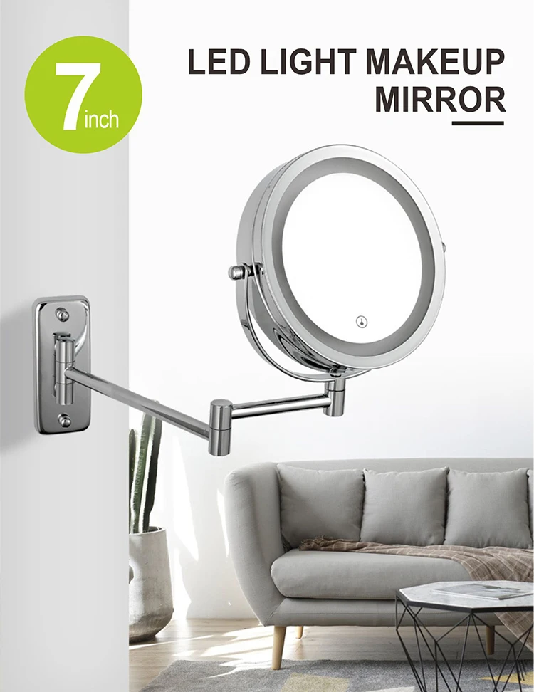 Настенное двухстороннее зеркало для макияжа в ванную комнату 7 дюймов со светодиодсветильник кой умное Сенсорное регулируемое вращение на 360 градусов зеркало для туалетного столика