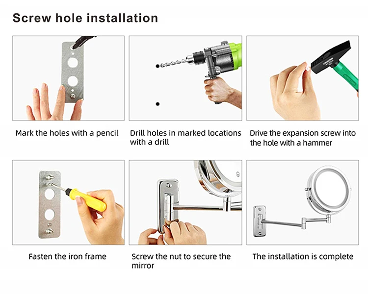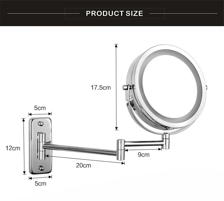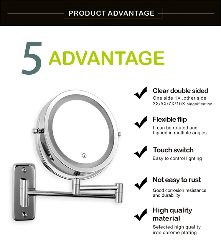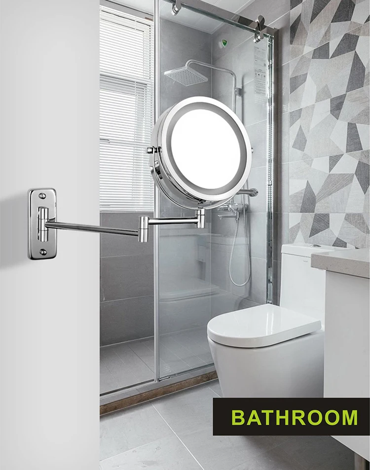 【 Зеркало с поворотом на 360 ° С ARM】 - 360 ° раздвижное зеркало для макияжа для ванной комнаты позволяет регулировать его под любым углом, чтобы соответствовать вашему положению, легко наносить макияж в ванной, не промокая. Просто сложите его плоско к стене, чтобы сэкономить место, когда вы закончите.