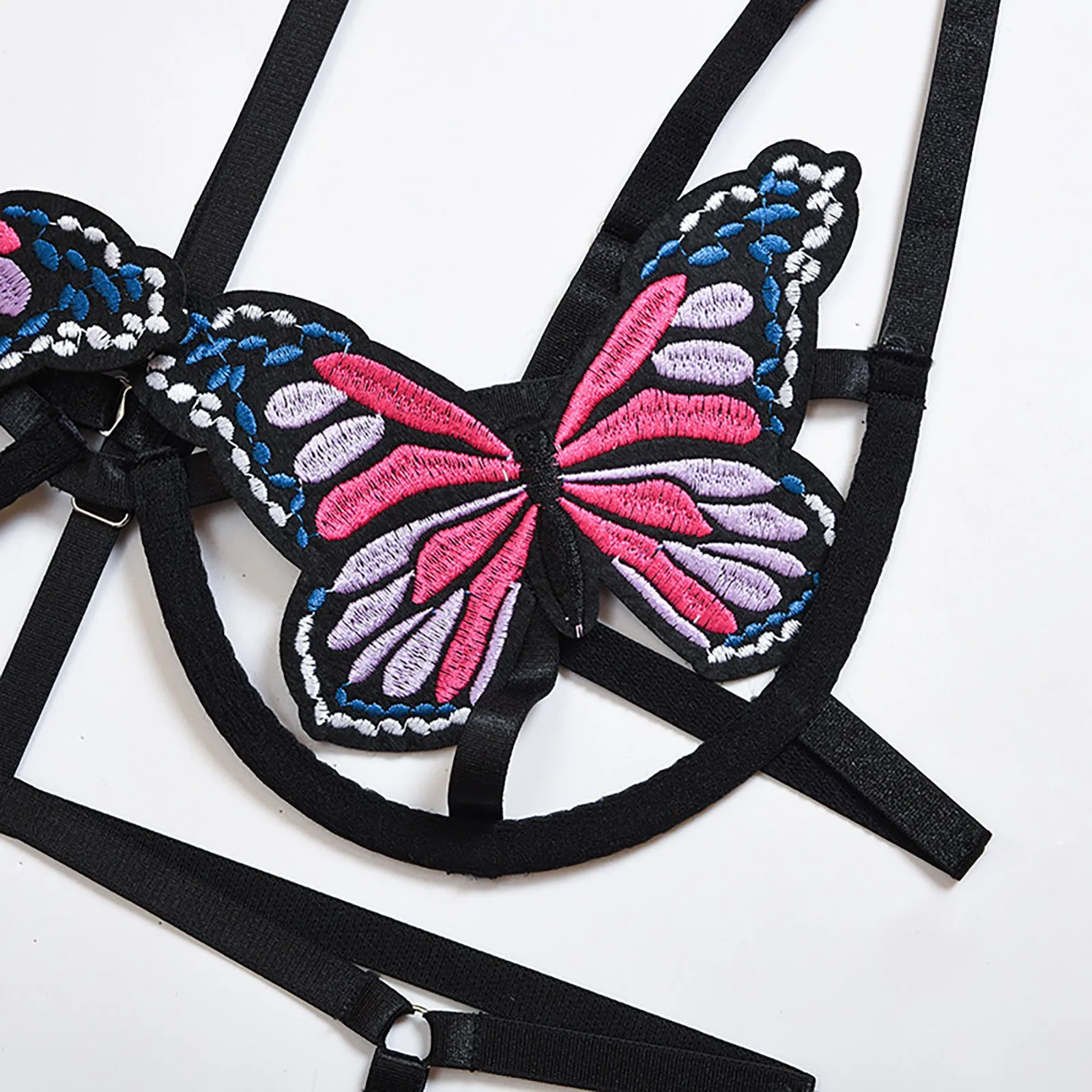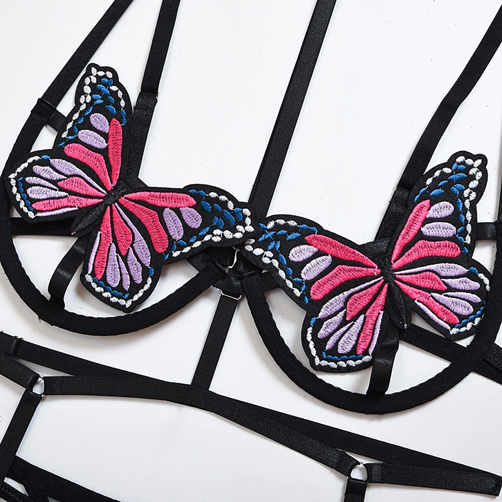 Женское сексуальное Сетчатое нижнее белье Прозрачный Кружевной Костюм из трех предметов с бабочкой