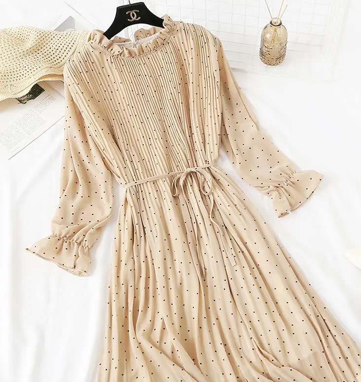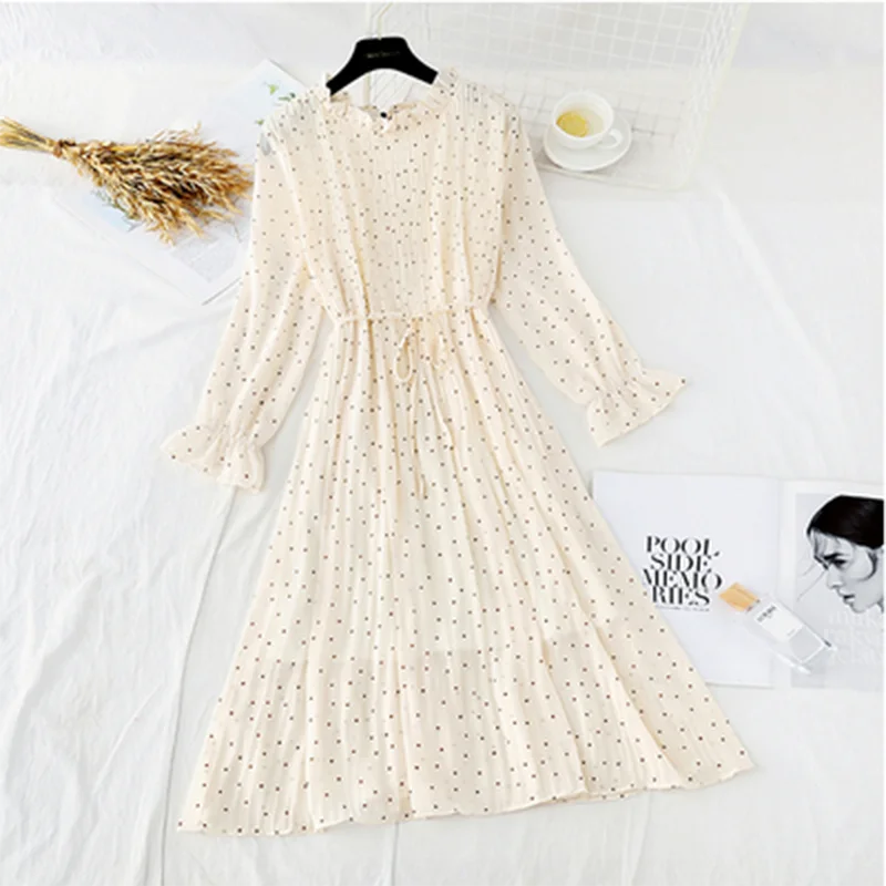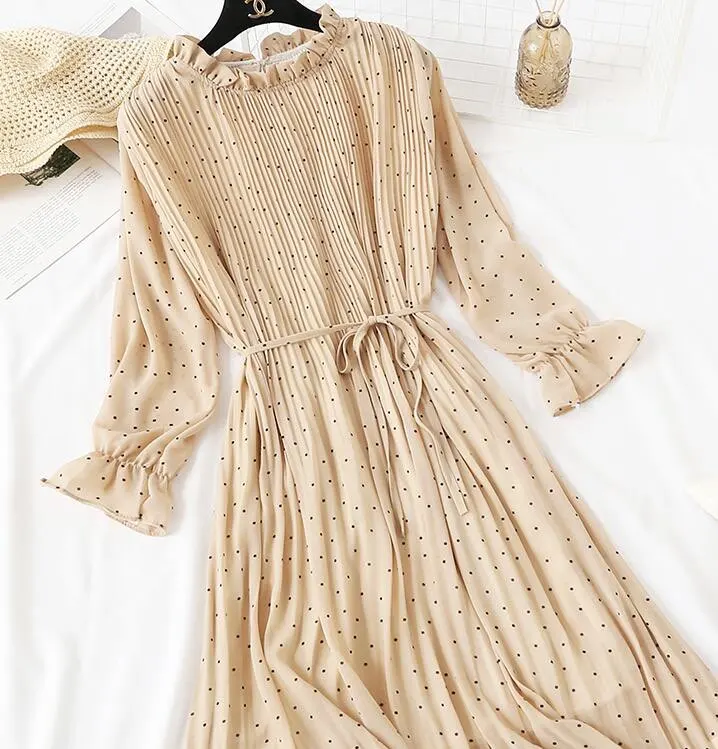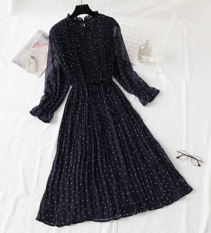 Женское Плиссированное шифоновое платье с принтом, новые модные повседневные женские платья с расклешенными рукавами и воротником в виде листьев лотоса, весна-лето 2022