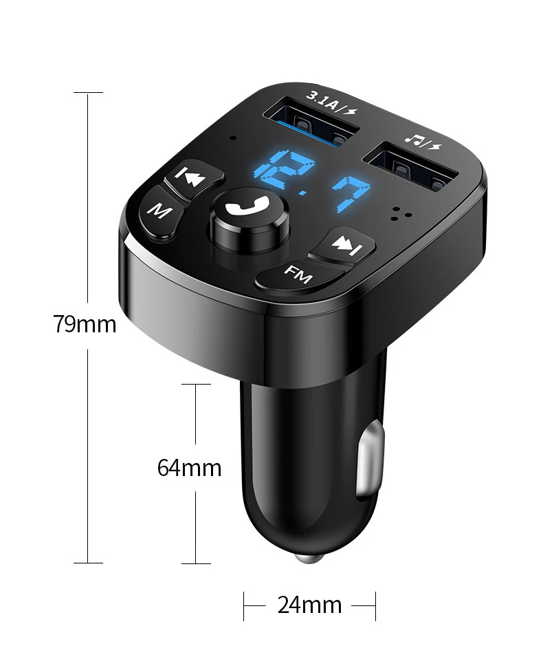 Функции: Двойная зарядка USB, u-диск, FM, Bluetooth музыка, звонки без рук, bluetooth-навигация, светодиодный датчик напряжения и т. д.