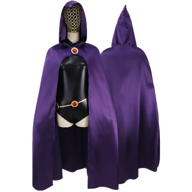 Женский костюм для косплея из аниме Подростки Титаны, черный костюм с вороном и капюшоном, Фиолетовый комбинезон для Хэллоуина, вечевечерние НКИ