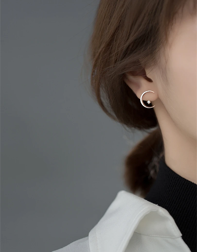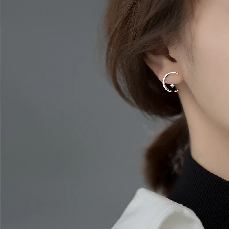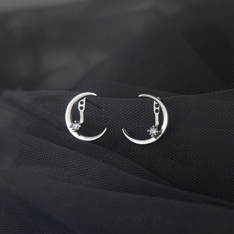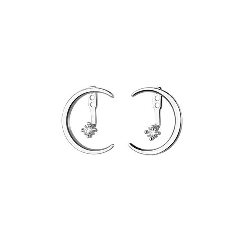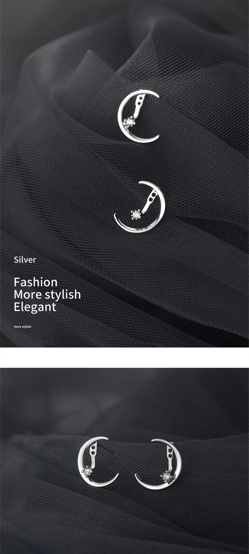 925 пробы женские серебряные серьги корейские глянцевые серьги в виде Луны с одним Цирконом после подвешивания двух предметов серебряные ювелирные изделия