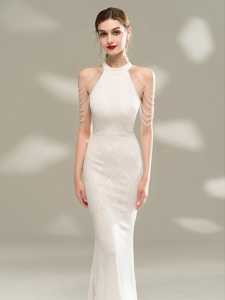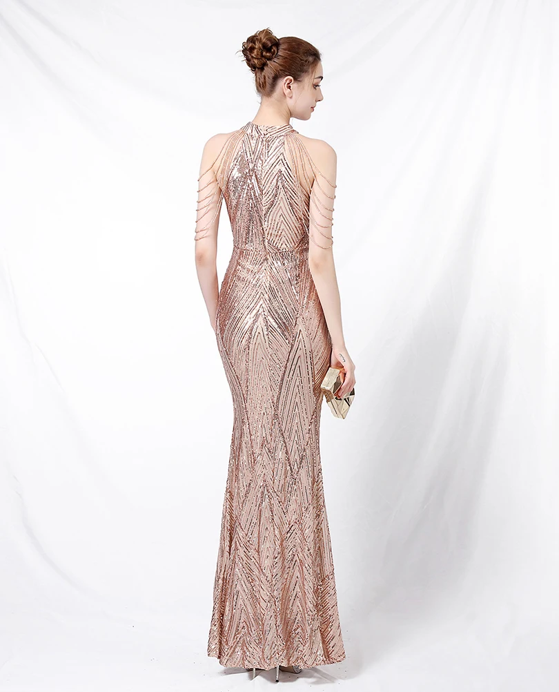 Женское вечернее платье-Русалка DEERVEADO с лямкой на шее и блестками