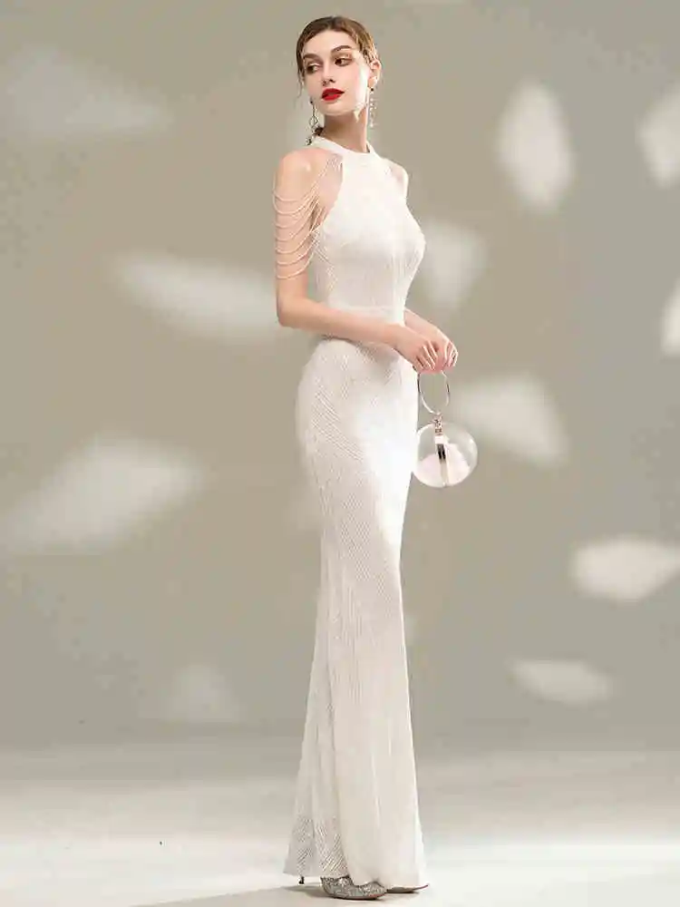 Женское вечернее платье YIDINGZS, Белое Облегающее Платье макси с о...