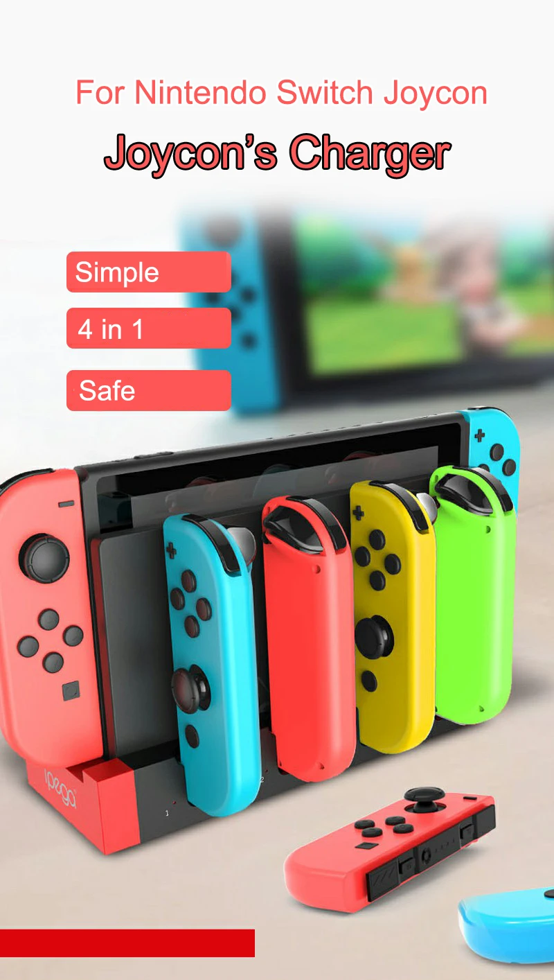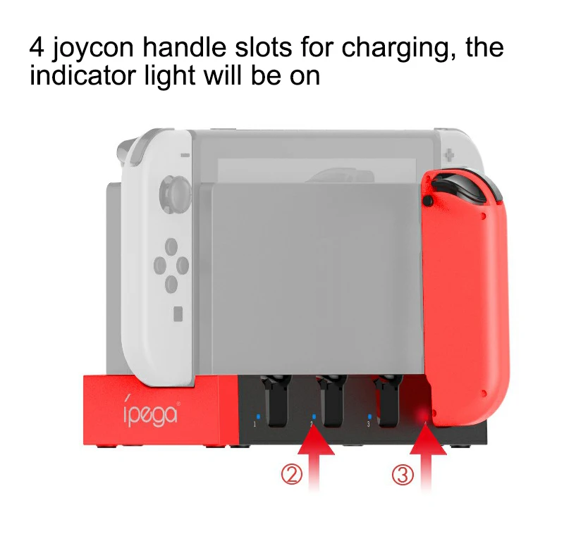 1. Это зарядное устройство поставляется в комплекте с оригинальной док-станцией N-Switch, используемой для зарядки N-Switch Joy-con;2. Этот продукт имеет 4 слота, используемые для зарядки, поддержка зарядки 1-4 шт геймпадов Joy-con одновременно;3. Оснащен штекером USB 2,0 interfac, поддерживает вход питания от оригинальной док-станции N-Switch;4. Расширенная гнездовая розетка USB2.0, Поддержка питания 5 в постоянного тока, поддержка функции связи;5. Простой дизайн, простота в эксплуатации, отображение состояния зарядки в режиме реального времени;