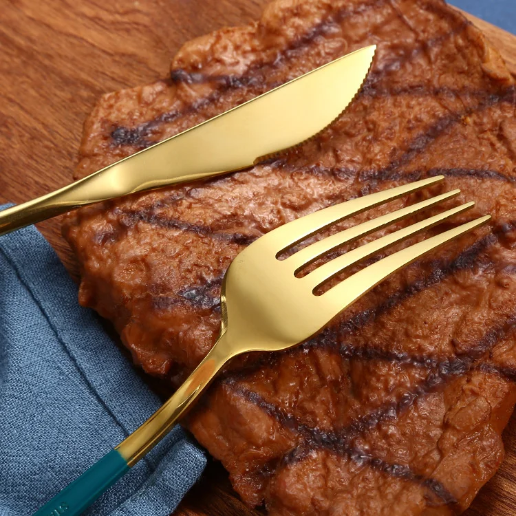 Золотистый 30 шт. стейк Ножи вилка, кофейная ложка чайная ложка Din...