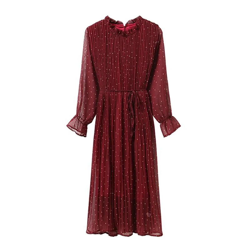 Женское длинное платье, винтажное шифоновое плиссированное платье с...