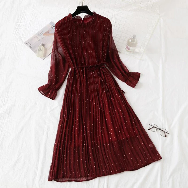 Женское шифоновое плиссированное платье в горошек, с расклешенным р...