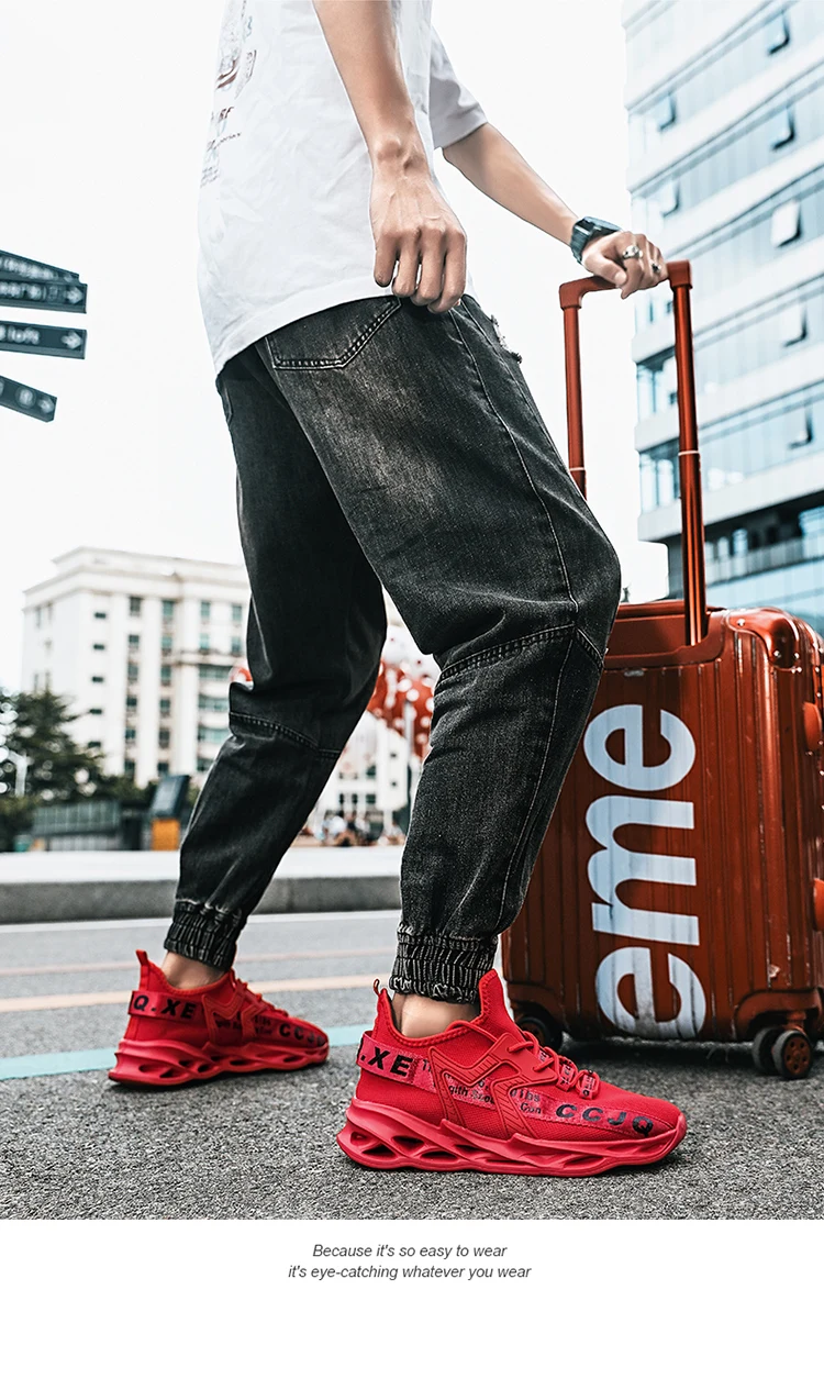Кроссовки мужские, сетчатые, дышащие, повседневные, красные, большо...