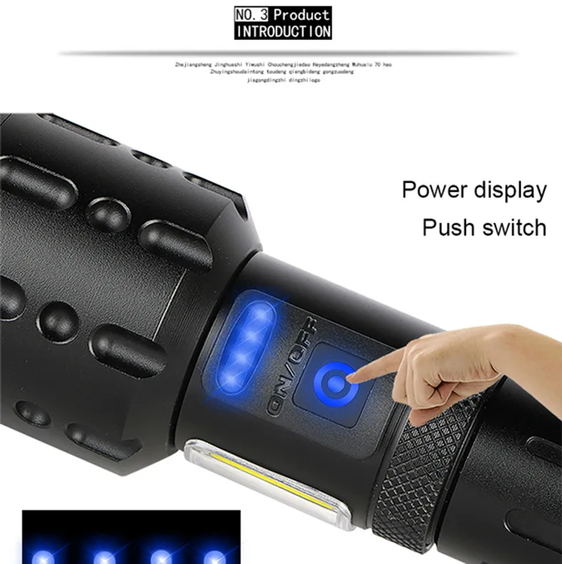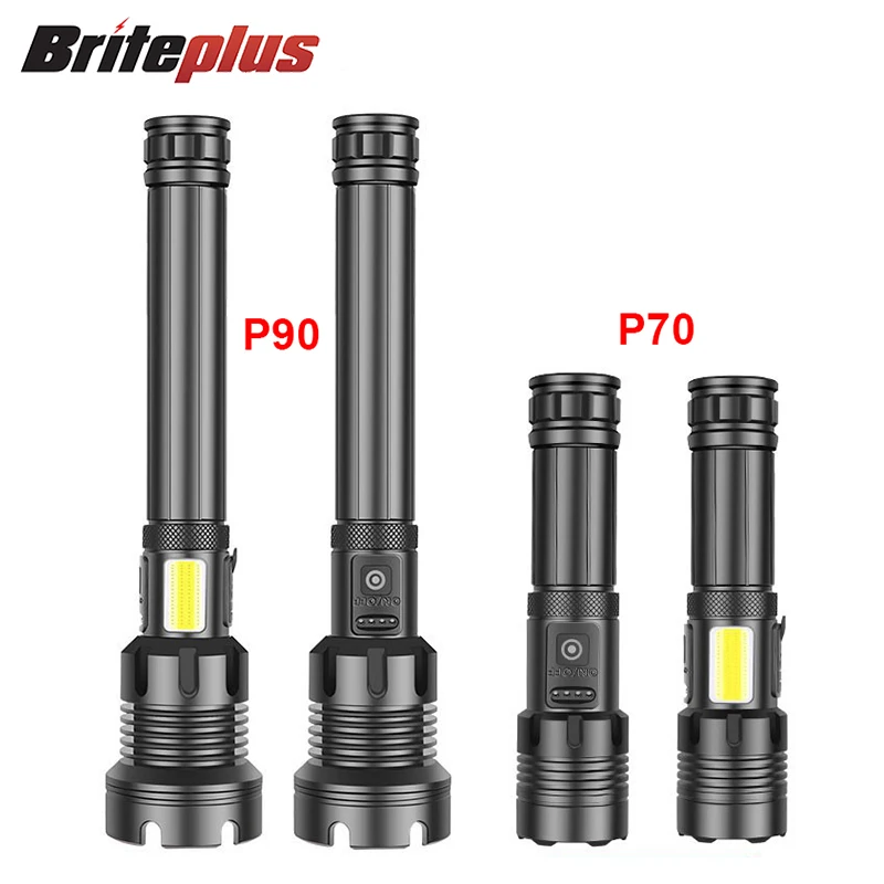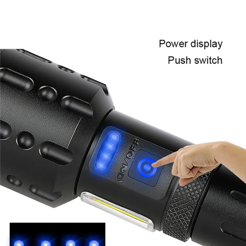 Фонарик P90 из алюминиевого сплава с зумом, мощный портативный сенсорный фонарь 2000 люмен, суперъяркий уличный фонарь с босветильник светом Cob