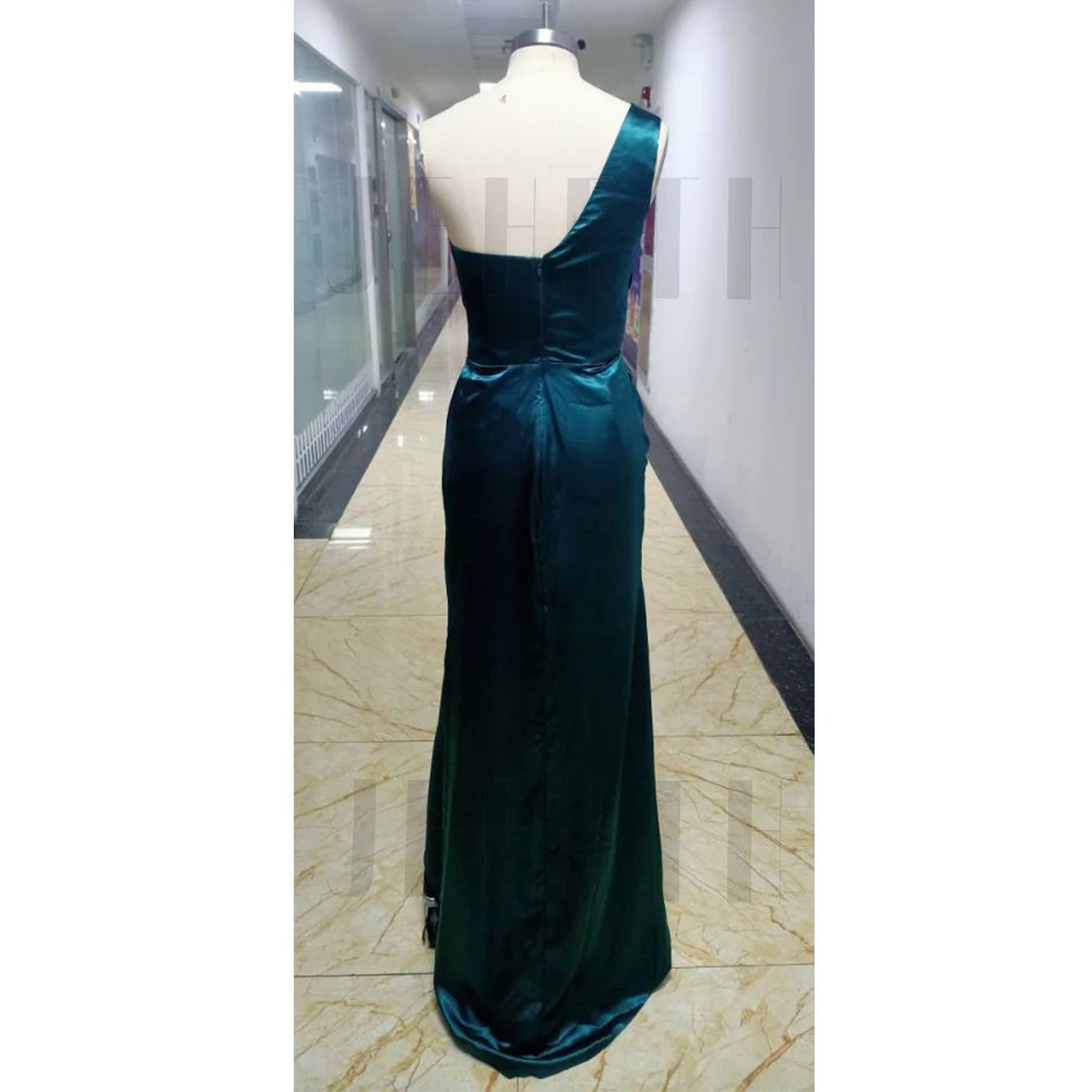 Сексуальное темно-зеленое вечернее платье JEHETH, официальное длинное платье на одно плечо в пол, атласное вечернее длинное платье, Индивидуальный размер