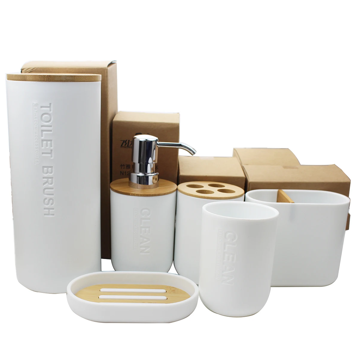 6 шт. бамбуковая ванная комната s Набор туалетной щетки чашка держа...