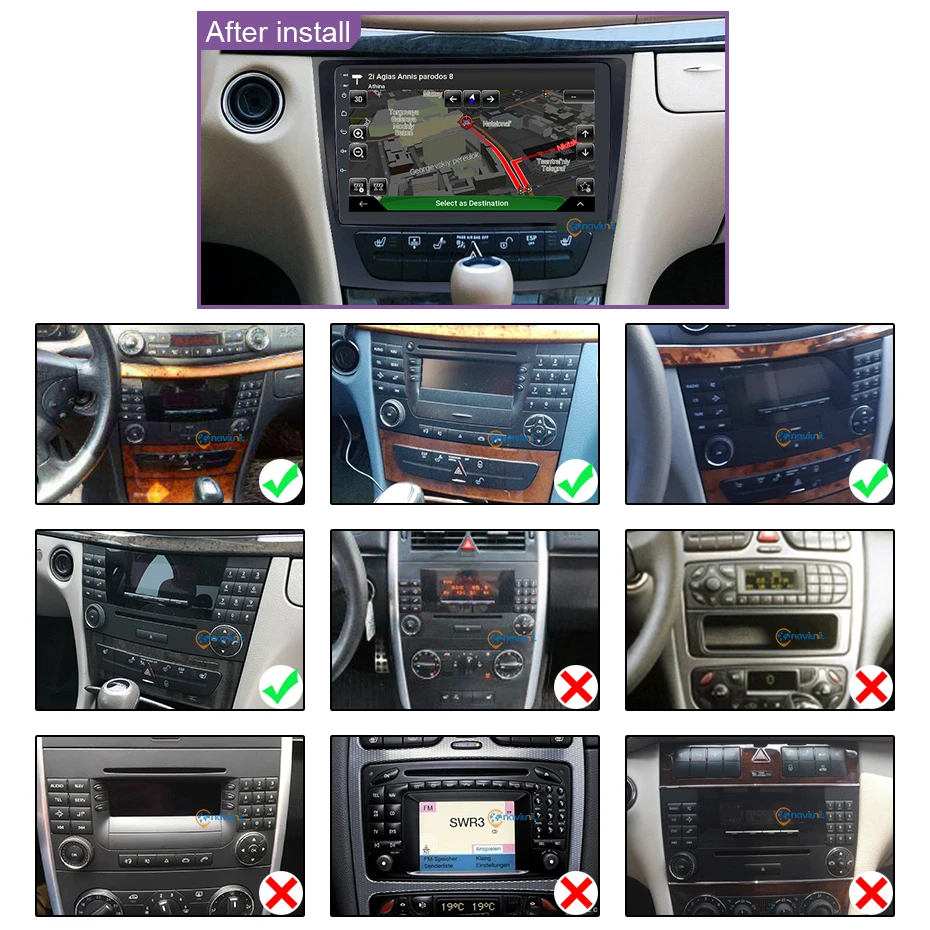 Тик означает, что он может установить наше радио.Крест означает, что он не может быть установлен, размер радио отличается от нашего продукта. Если вы все еще не уверены, пожалуйста, оставьте сообщение нашей службе поддержки клиентов. Мы поможем вам.