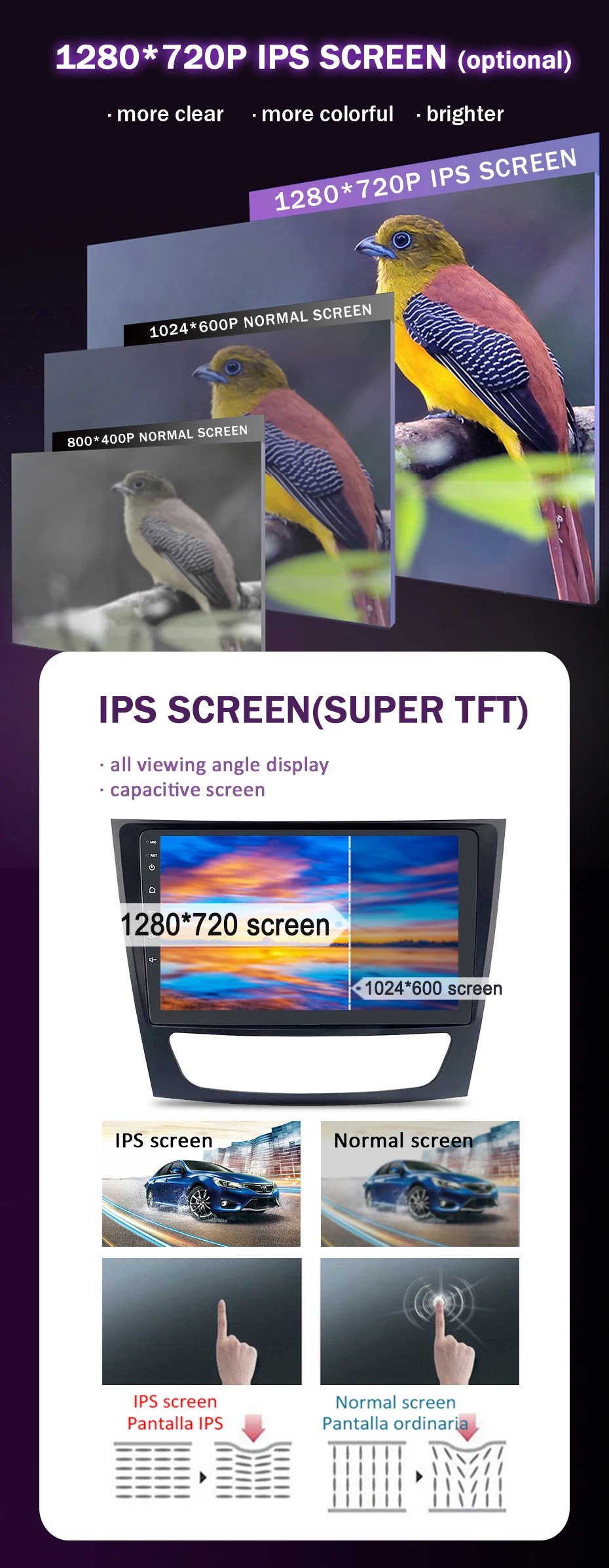 Экран 1280*720P IPSЭто Радио имеет два вида экрана-1024*600P HD экран и 1280*720P супер HD экран. Экран 1280*720 ярче и ярче обычного hd-экрана. Вы можете выбрать тип по вашему желанию.