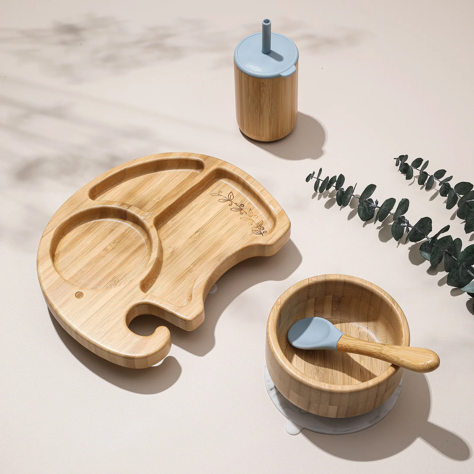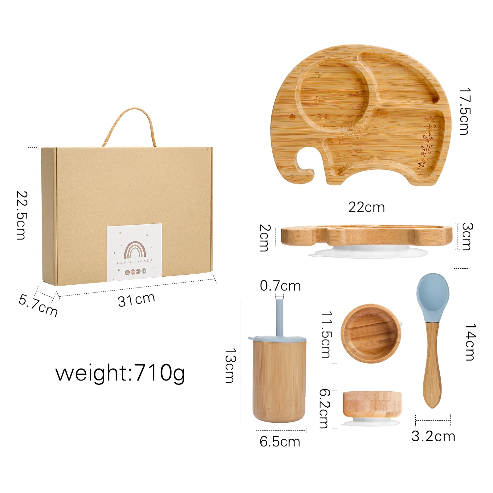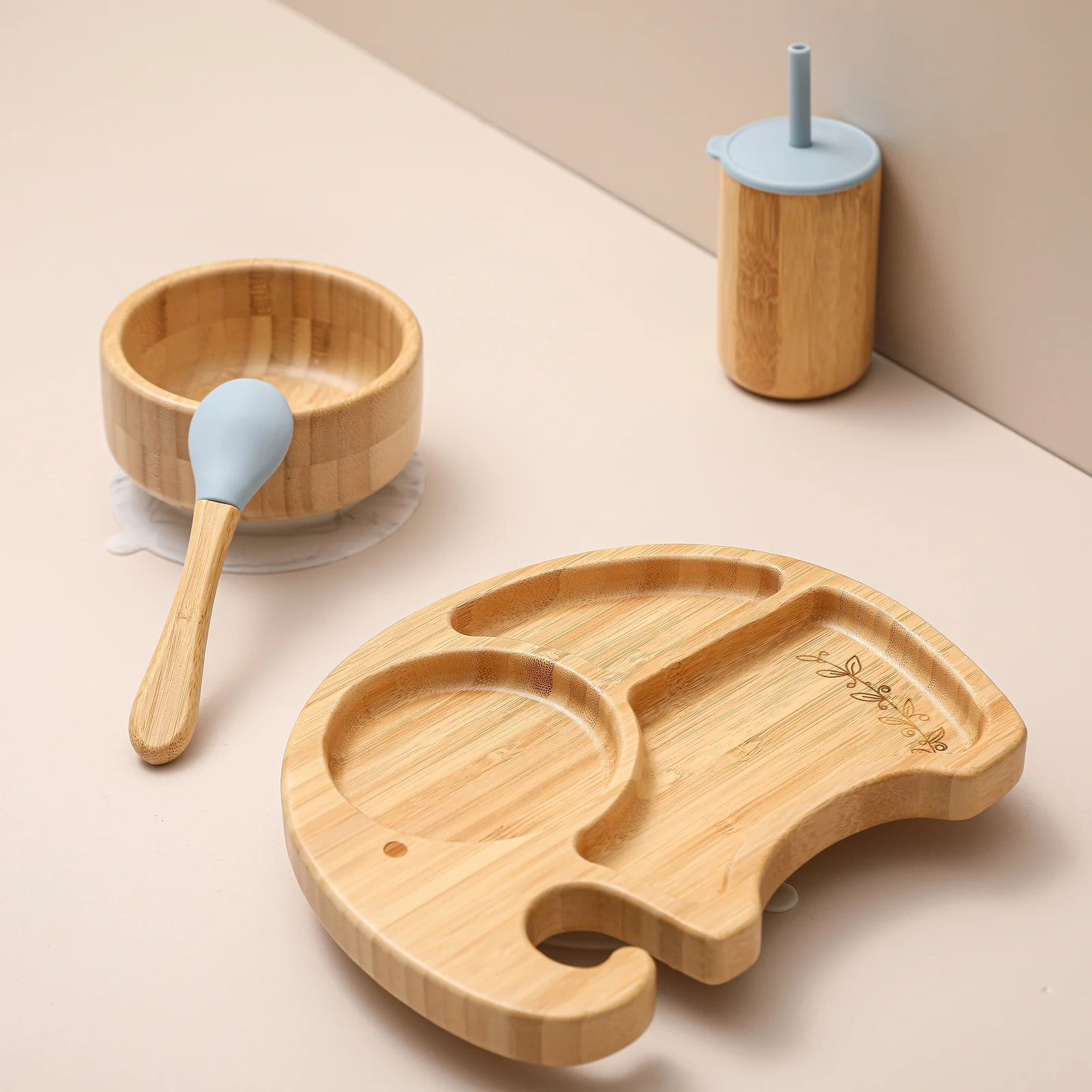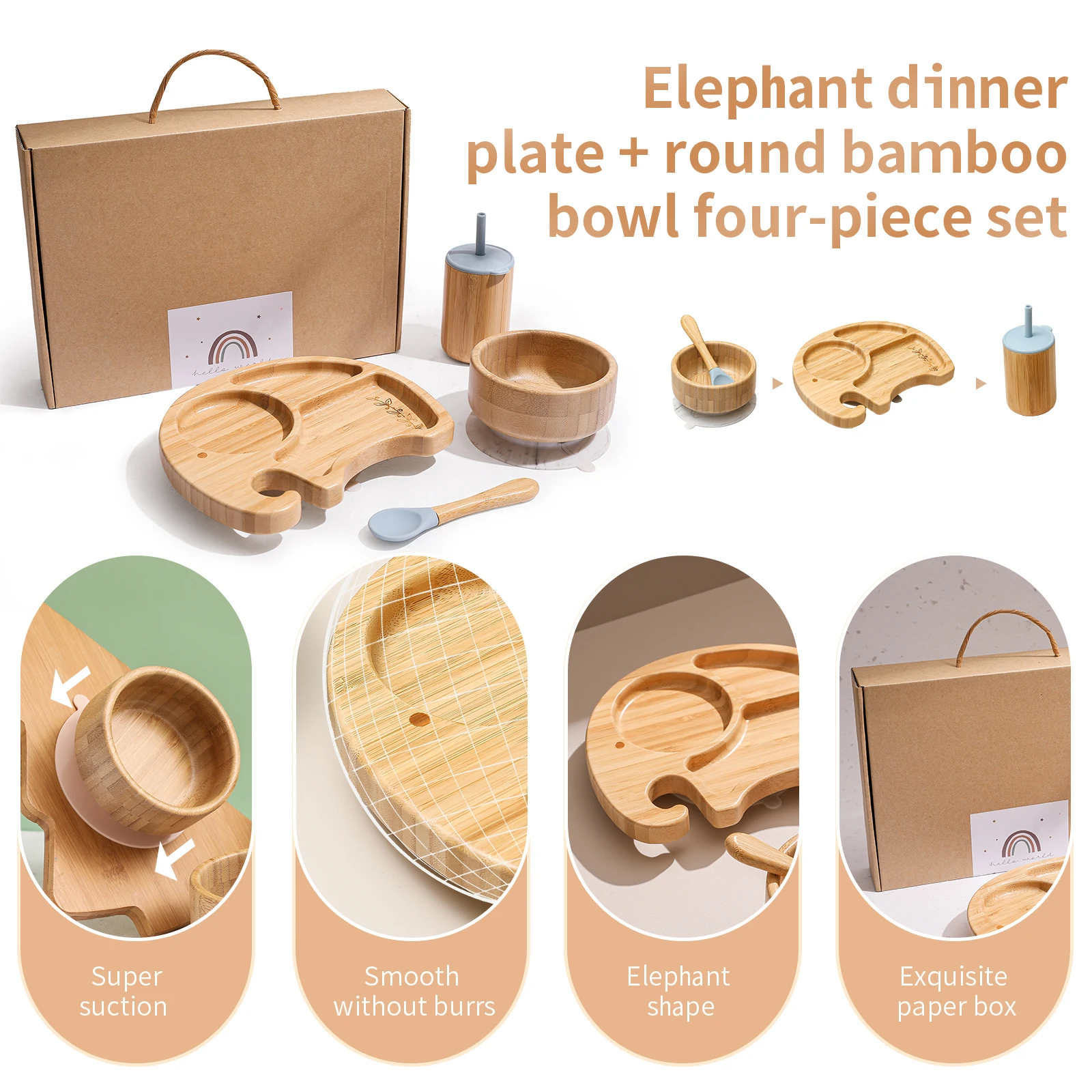 4 шт.1 детали, силиконовые нагрудники для малышей, бамбуковый деревянный слон, обеденные чашки-тарелки, соломенная чашка, посуда, детские подарки