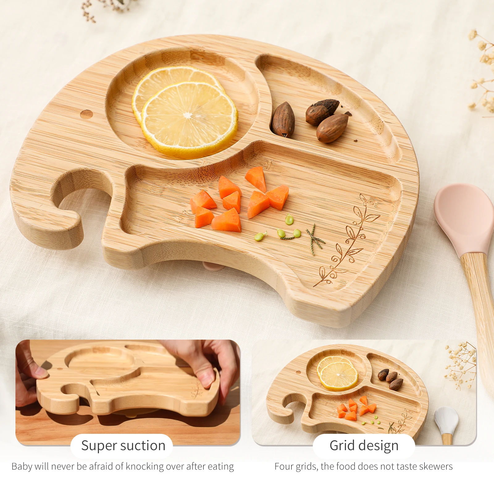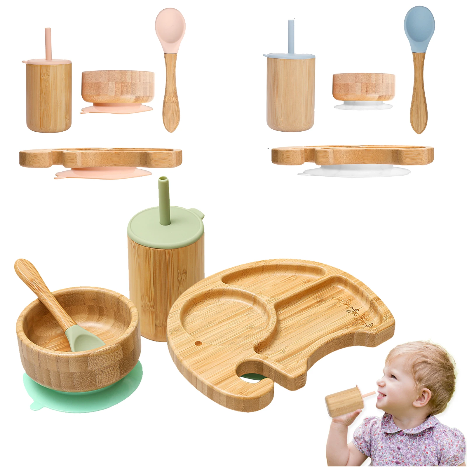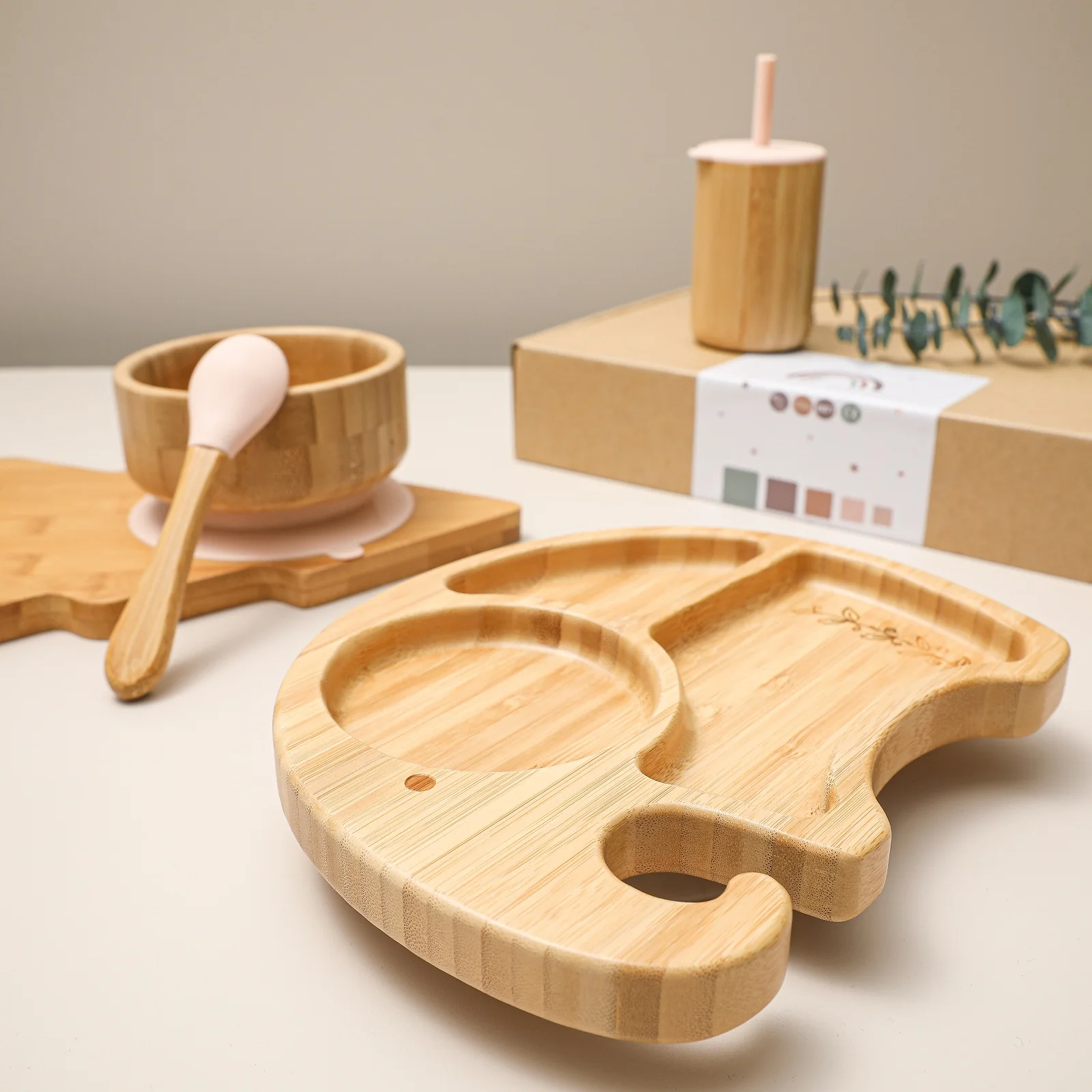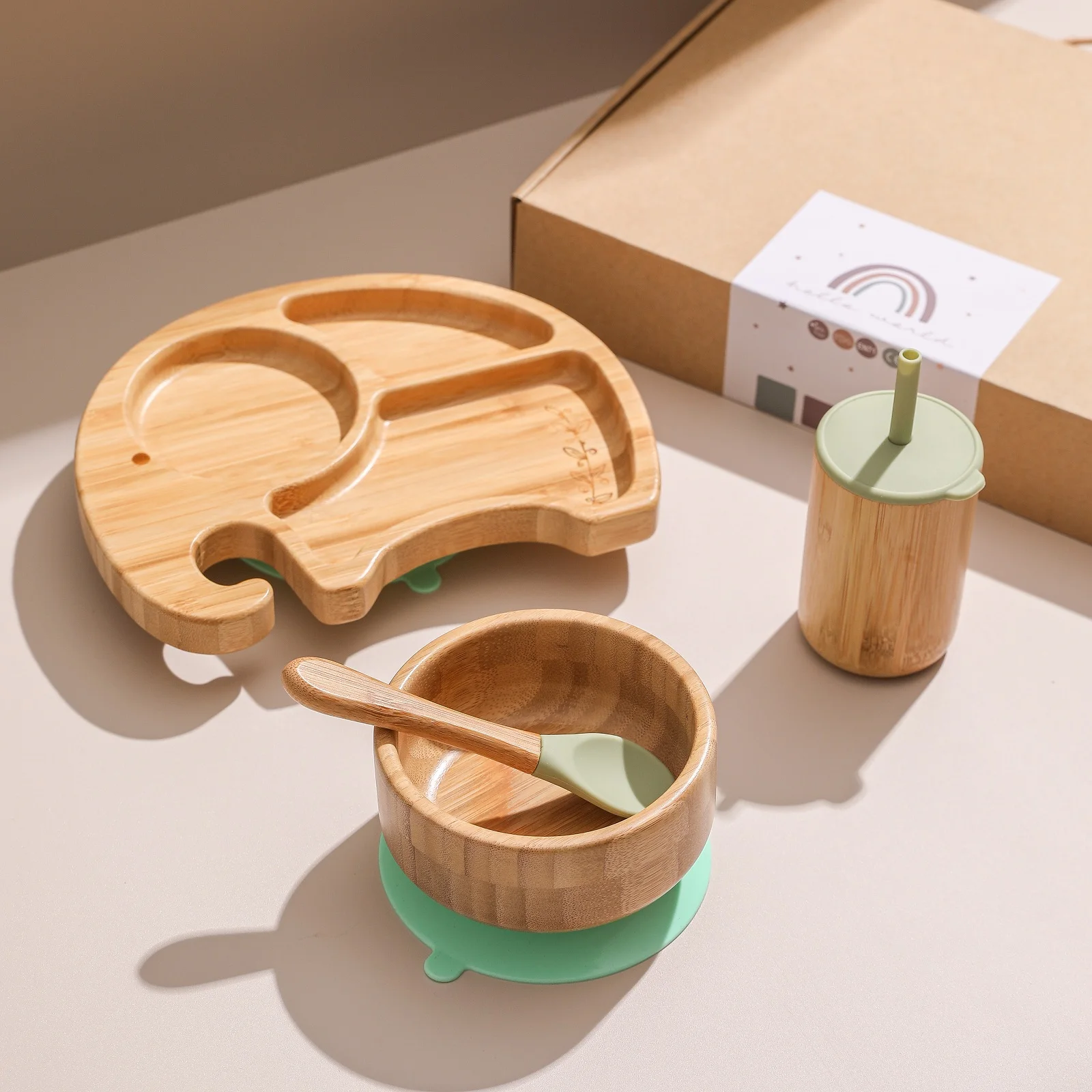 4 шт.1 детали, силиконовые нагрудники для малышей, бамбуковый деревянный слон, обеденные чашки-тарелки, соломенная чашка, посуда, детские подарки