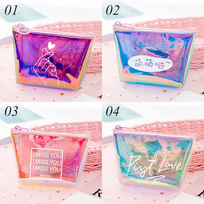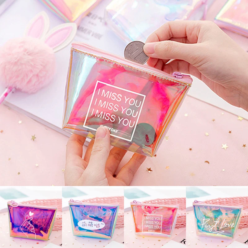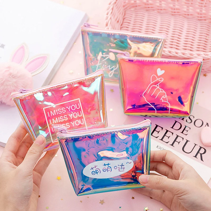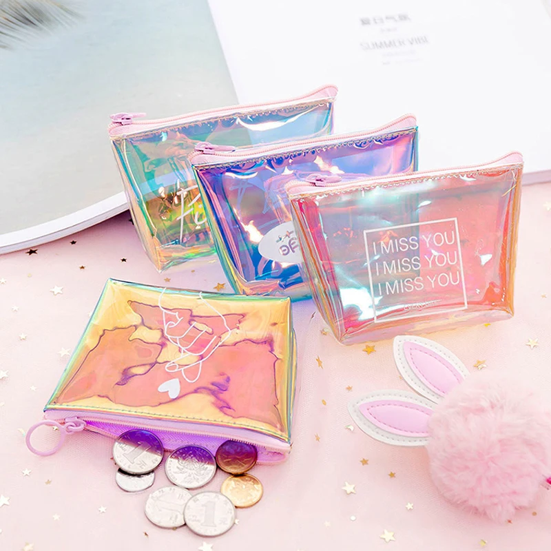 Модный кошелек для монет с лазерным рисунком, маленький прозрачный бумажник из ПВХ на молнии, чехол для ключей, наушников, радужного цвета